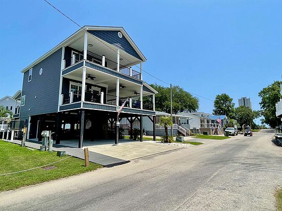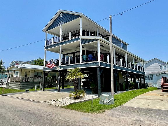 OUTDOOR PARADISE! LUXURY BUILT 5 BED/3.5 BATH LAKEFRONT RAISED BEACH HOUSE WITH 2 LEVELS OF OUTDOOR ENTERTAINING SPACE INCLUDING A CUSTOM BUILT OUTDOOR GRILLING AREA, GRANITE TOP BAR, TREX DECKING, 3 DINING AREAS, 3 TV VIEWING AREAS, MULTIPLE LOUNGING AREAS AND UNDERNEATH DROPDOWN SUNSCREENS WITH TWO ROLLOUT AWNINGS OVER THE WATERFRONT SUNBATHING AREA. ADDITIONAL LARGE PRIVATE DECK ON TOP LEVEL. WONDERFULLY MAINTAINED INTERIOR WITH OPEN FLOOR PLAN AND SPACIOUS BEDROOMS AND BATHS WITH MASTER BEDROOM ON EACH LEVEL. BUILT IN 2018 THIS HOME HAS NEVER BEEN RENTED! PERFECT FOR FULL-TIME RESIDENCE, SECOND HOME OR INCOME DRIVEN VACATION RENTAL. MUST SEE! NOW SHOWING! There is no HOA in Ocean Lakes however, the house is located on leased land, which is payed in two semiannual payments due in January and July. There is a one time lease transfer fee to Ocean Lakes. Amenities abound in Ocean Lakes' gated community and include one mile of pristine white sand beach, 24 hour security, free trash pick-up, free cable TV, indoor/outdoor swimming pools, large water park/slides, lazy river, kid's splash zone, new dog park, new beachside coffee house and ice cream bar, playgrounds, full size basketball courts, miniature golf, fire pit, corn hole, shuffle board, horseshoes, ping-pong, Sandy's Down-under skatepark, recreation building, arcade, general store, golf cart rentals, Sandys Meet & Eat restaurant and more!