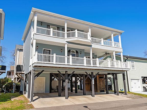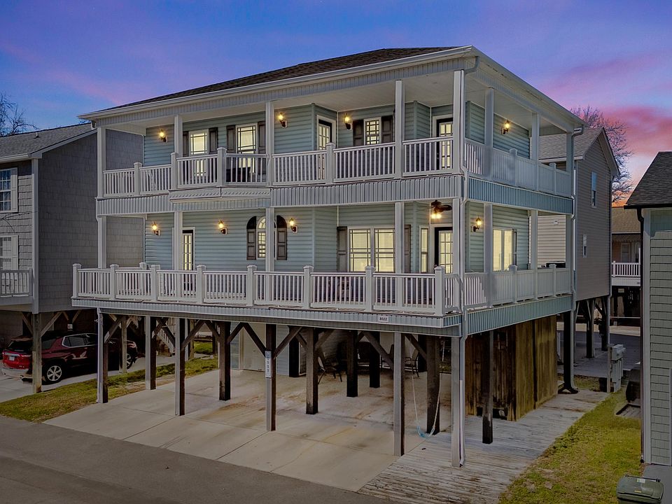 This 2008 custom built home faces east for morning sun on both large decks and afternoon shade for those hot summer afternoons. Under the house you have a golf cart garage, outdoor shower with hot and cold water, parking for 4 cars, and a great entertaining area. 1st floor has a large living room with ceiling fan, dining area, breakfast bar with seating for 4-6 bar stools. Custom kitchen with upgraded cabinetry, granite counters, top of the line stainless steel appliances, recessed lighting, and tons of counter and cabinets. Laundry with full-size washer and dryer is on the main floor as well as a 1/2 bath and linen closet. Main bedroom on the 1st floor has deck access, ceiling fan, his and her closets, attached bathroom with large walk-ion tiled shower, garden soaking tub, and dual vanity with granite counters. Upstairs is another main bedroom with tray ceiling, ceiling fan, his and her closets, deck access, and attached bathroom with tub/shower combo, and vanity with granite counters. Bedroom #3 with deck access, bedroom #4, and bedroom #5 share full bathroom #3 with tub/shower combo and vanity with granite counters. Home is being sold fully furnished!