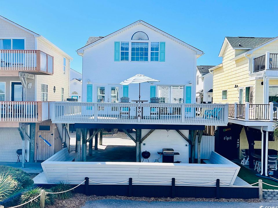 JUST LISTED! RARE OPPORTUNITY TO OWN AN OCEAN VIEW RAISED BEACH HOUSE ALONG SEASIDE DR IN OCEAN LAKES! BEAUTIFUL OCEAN VIEWS ALL AROUND FROM THIS 4 BED/2 FULL BATH/2 HALF BATH RAISED BEACH HOUSE WITH SMALL 5th BEDROOM OFF ONE OF THE TWO MASTERS. WONDERFUL OCEAN BREEZE AND PLENTY OF OUTDOOR ENTERTAINING SPACE WITH HUGE GROUND LEVEL LOUNGING/GRILLING AREA PLUS WRAP AROUND DECK UP ON THE MAIN LEVEL WITH SPLENDID OCEAN VIEWS. YOU WILL SIMPLY FALL IN LOVE WITH THE AMAZING SUNRISES FROM THE FRONT DECK WHILE ENJOYING YOUR MORNING COFFEE. LOCATION, LOCATION, LOCATION!!! NOW SHOWING! Measurements are not guaranteed and are the responsibility of buyers and their agents. There is no HOA in Ocean Lakes. Homes are located on leased land, which is payed in two semiannual installments due in January and July. If you've never visited Ocean Lakes you must check this resort out. Amenities abound in this gated, oceanfront community and include one mile of privately accessed pristine white sand beach, 24 hour security, FREE trash pick-up, FREE cable TV, and FREE access for homeowners and their guests to all amenities including, indoor/outdoor swimming pools, water slides, lazy river, kid's splash zone, new dog park, new beachside coffee house and ice cream bar, playgrounds, full size basketball courts, miniature golf, fire pit, corn hole, shuffle board, horseshoes, ping-pong, Sandy's Down-under skatepark, recreation building, arcade, general store, golf cart rentals, Sandys Meet & Eat restaurant and more!