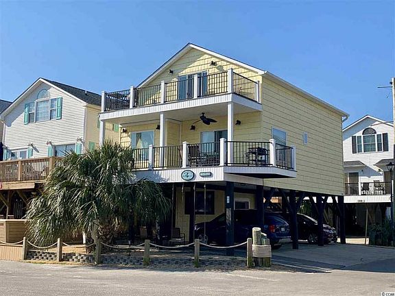 STUNNING OCEAN VIEWS FROM THIS 3 BED/3 BATH RAISED BEACH HOUSE JUST STEPS FROM THE WHITE SAND BEACHES OF GATED OCEAN LAKES OCEANFRONT RESORT. Temporarily off the market, this is a rare opportunity to own property this close to the shore in Ocean Lakes! Completely updated from top to bottom, this spectacular beach house located on highly desirable Seaside Drive is a turnkey investment and boasts of many new upgrades including, granite countertops in kitchen and baths, new kitchen cabinets, stainless steel appliances, tile and LVP flooring throughout, crown and chair molding, custom built-ins in bedrooms, tankless water heater, low maintenance composite decking, high quality double thick shaker siding and more! Main floor consists of large family/great room, updated kitchen with tons of storage and counter space, pantry, breakfast bar, washer/dryer, dining area, one full bath with a stand up tile shower and one large bedroom with custom builtins, workspace and a private walkout balcony with ocean views. Second level has two extra large bedrooms with custom built-ins, one with full ensuite and a private walkout deck with amazing ocean views and a full hall bathroom with double sink and tile tub shower combo. Both upper bedrooms are large enough to accommodate additional beds. Great outdoor living with tranquil ocean views from the huge partially covered deck on main level, large private walkout deck on upper level and shaded lounging/grilling area on the ground level that includes a private outdoor shower with hot water and a spacious attached garage/workshop. Fabulous Home! High Rental Revenue Potential! Now Showing! Must honor 2021 rentals. There is no HOA in Ocean Lakes however, the homes are located on leased land, which is payed in two semiannual installments in January and July. Amenities abound in Ocean Lakes' gated community and include almost a whole mile of pristine white sand beach, 24 hour security, trash pick-up, indoor/outdoor swimming pools, new large water park/slides, 2 full size basketball courts, miniature golf, fire pit, corn hole, shuffle board, horseshoes, ping-pong, Sandy's Down-under skatepark, recreation building, arcade, general store, golf cart rentals, Sandys Meet & Eat restaurant and more!