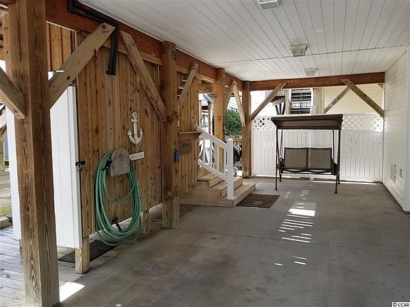 Ocean view beauty here located within the gates of the award winning Ocean Lakes. This fabulous 4 bedroom and 3.5 raised beach home comes completely furnished and ready for your enjoyment. If you are looking for the basic beach house then this is not the one for you. The current owners thought about it all when having their dream beach home built. The home has so many features it is nearly impossible to mention them all. Well we can start with the composite decking boards, vinyl hand rails and Polar Wall Plus insulated vinyl siding for added protection from the elements, easy clean up and lower maintenance. You want to have that extra time to relax and enjoy the beach. The home has a lower deck which extends off of the front of the home 11 feet by 32 feet with 6 feet by 32 feet being covered. The side deck deck along with the entry steps are fully covered with a 7 x 32 roof. There is also a second floor covered deck that is 6 feet by 25 feet with great views of the Atlantic. The home also features double hung insulated windows for easy cleaning. The HVAC unit is a Bryant Evolution model which was installed in 2016. Once you open the door to this home you are sure to love the open feeling this property gives you. The dining area, kitchen and living room are all wide open. The ceilings on the 1st floor are 9' and the walls are accented by crown molding, chair rail and bull nosed corners. The kitchen features custom cabinets with under cabinet lighting and an installed electrical outlet above the cabinets if you decide to add lighting to the top of the cabinets. The work island provides additional counter space and storage. The master bedroom is located on the 1st level and features carpet flooring along with a ceiling fan. The master bathroom has a large 7' tub and shower combination with tiled walls. The bathroom features ceramic tiled flooring. The master walk in closet along with the washer and dryer are located in the master bath. The master bath also has its own private entry from the side deck. The whole upstairs can be closed off with the built in pocket door at the top of the steps. The 2nd level has three more bedrooms and a 2nd living area for those large gatherings. Two of the bedrooms upstairs share a bathroom and the 3rd bedroom has its own full bath with tub and shower combination. There is access to the 2nd level deck from the upstairs living area. Plenty of parking can be found under the home and a 13 x 10 storage shed is also attached for the golf cart parking and beach belongings. You can leave the salt and sand outside with the included outdoor shower complete with hot and cold water. This home would make for a great primary residence or vacation rental. Are you familiar with Ocean Lakes? Ocean Lakes is a 300 acre ocean front complex with 24 hour security. You are sure to love all of the amenities that Ocean Lakes has to offer. Some of the amenities included are an indoor and outdoor swimming pools, basketball courts, volleyball, shuffle board, horse shoes and much, much more. There is an awesome water park complete with lazy river and slides for all owners and guests to enjoy. Short term rental is allowed in Ocean Lakes. Please do not miss this property. Don't delay. View today. Square footage is approximate and not guaranteed. Buyer is responsible for verification.