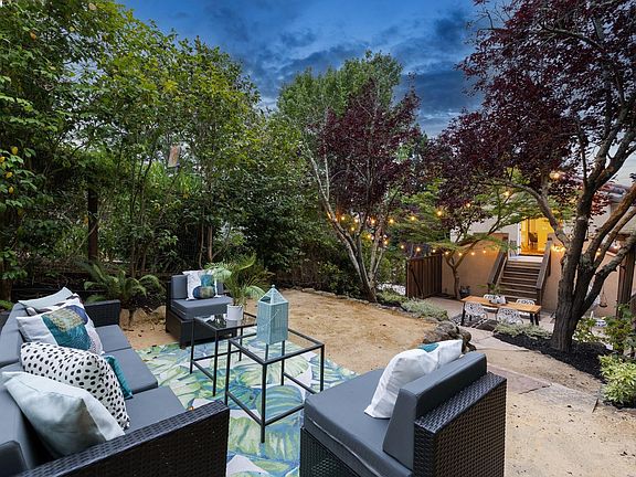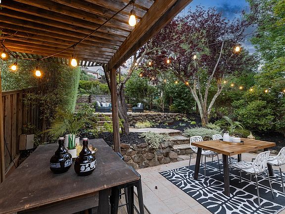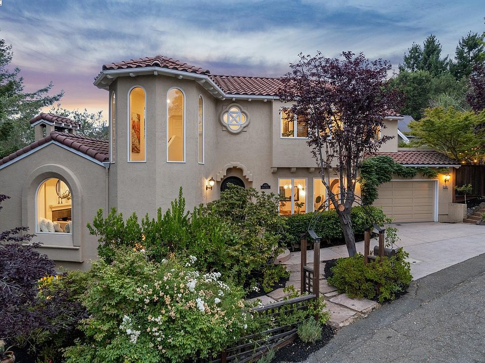 Live in elegance and comfort in this 4+BD/2.5BA Glen Highlands home, combining the ease of modern construction with beautiful Spanish Revival architecture. Archways, built-ins, picture windows, and gorgeous hardwood floors inspire throughout this 2817 SQFT home. Enjoy excellent flow with a sunny formal dining room and open living room with an arched picture window, recessed ceiling, fireplace, and French doors to a patio with Oakland Hills views. The newly remodeled kitchen is a stunner with glass cabinetry, Thermador appliances, an island, and French doors to the patio for easy indoor/outdoor living. The first floor features a powder room, laundry room, and access to the 2-car garage. Up the turreted staircase is the amazing primary suite: windows galore, a dressing area, walk-in closet, and large ensuite bath. An adjoining room is perfect as an office or nursery with French doors to the exquisite Mediterranean gardens with mature landscaping, patios, play area, vegetable garden, shed, and fire pit area tucked into an amphitheater of trees. The lower level offers 3 more comfortable bedrooms (one over-sized, ideal for guests or office) and full bath. Rockridge, Claremont, Montclair, East Bay Parks, coveted schools, and commute options are nearby.