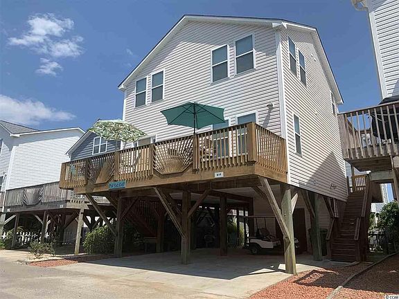 Best Value in Ocean Lakes!! Fantastic Location on Highly Desired, Seahorse Lane! 2nd row, 2-story Raised Beach House with fantastic ocean views located in award winning, ocean front Ocean Lakes. One row back from the beach and situated within walking distance to the pool and waterpark, this 4-bedroom, 3-bathroom home comes complete with all appliances and furnishings and is move in/rental ready. Beautiful open concept home with spectacular, scratch resistance, laminate wood flooring and exquisite concrete countertops. With two large upper decks and 2,400 sq. ft. under roof and over 1,600 heated sq. ft. you're sure to fall in love with this spacious home perfect for large families and entertaining. Imagine lounging in the large shaded patio on the mail level or the large upper deck with a good book and drifting off to sleep to the crashing sounds of the ocean waves. All of this situated in a gated and friendly beachfront neighborhood close to all Myrtle Beach has to offer. Home sleeps 14 comfortably and has excellent rental history. Must honor 2019 rentals. There is no HOA in Ocean Lakes however, the house is located on leased land, which is payed in two semiannual payments in January and July. Amenities abound in Ocean Lakes' gated community and include almost one mile of pristine white sand beach, 24 hour security, trash pick-up, free basic cable, indoor/outdoor swimming pools, water park/slides, lazy river, 2 full size basketball courts, miniature golf, fire pit, shuffle board, horseshoes, ping-pong, Sandy's Down-under skatepark, recreation building, arcade, general store, golf cart rentals, Sandys Meet & Eat restaurant and more! Homeowners and guests receive free admission to all amenities.