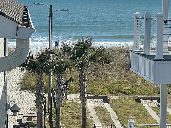 2nd row beach house with amazing Ocean Views. Fully furnished 5 bedroom/3 bath 2-story raised turnkey beach house located in award winning Ocean Lakes. Steps to the ocean, playground, basketball courts, sand volleyball and more. 300’ to the pools and waterpark, this home is complete with all appliances. Beautiful open concept home with spectacular wood flooring, fully equipped kitchen, new Samsung Smart TVs throughout, and new carpet in bedrooms. Main level offers large dining and living area, huge kitchen, laundry, pantry, ocean views, queen bedroom, full bath, and huge ocean facing deck. 4 second level bedrooms with vaulted ceilings and 2 full bathrooms. 2 of the upper level bedrooms, one king and one queen, are ocean view with private access to large upper level private deck. 2 additional upper level bedrooms consist of one queen bedroom and one bedroom with 2 twin beds. Large ground level deck entertaining space, private outdoor hot/cold shower, 2 large main level decks, one large upper level deck and over 1,600 heated sq. ft. you're sure to fall in love with this spacious home perfect for large families and entertaining. Enjoy a beautiful sunrise, lounge in the large shaded ground level or upper level decks with a good book, and drift off to sleep while listening to the sounds of the ocean waves. All of this situated in a gated and friendly beachfront neighborhood close to all Myrtle Beach has to offer. Home sleeps 10 comfortably and has an excellent rental history. 5th bedroom with twin beds could easily be made into a bunk room to increase home’s guest capacity to 12-14 rental guests. Must honor rentals within 90 days of closing. There is no HOA in Ocean Lakes, however the house is located on leased land, which is payed in two semiannual payments in January and July. Amenities abound in Ocean Lakes' gated community and include almost one mile of pristine white sand beach, 24 hour security, trash pick-up, free basic cable, indoor/outdoor swimming pools, water park/slides, lazy river, 2 full size basketball courts, miniature golf, fire pit, shuffle board, shaded corn hole courts, sand volleyball court, horseshoes, ping-pong, Sandy's Down-under skatepark, recreation building, arcade, general store, golf cart rentals, Sandys Meet & Eat restaurant and more! Homeowners and guests receive free admission to all amenities.