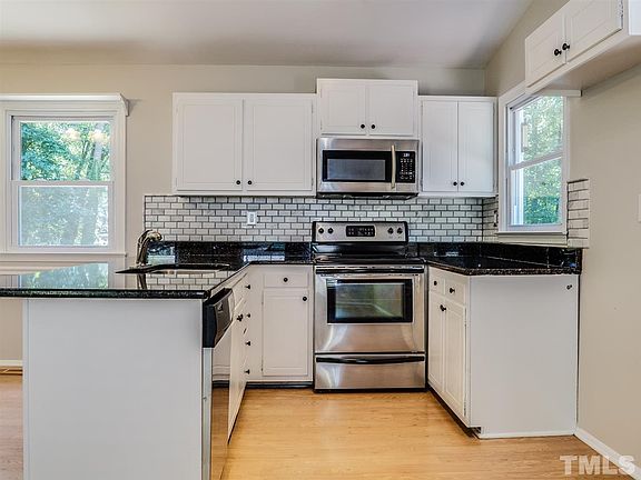 This Raleigh one-story offers granite kitchen countertops and hardwood flooring. Enjoy a sizable backyard, fresh interior paint and new carpet in select rooms.