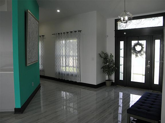 Lakefront Living on 135'+/- frontage Lake Tennessee with easy access to I-4 & Florida Polytechnic Campus near Lakeland, Orlando, Tampa; 2019 Custom Built 4BR/3Bath + Lakefront Living on 135'+/- frontage Lake Tennessee with easy access to I-4 & Florida Office + Rec Room + Gym/Bonus Room; 3316sq' on Main Level per tax record + 745sq' finished basement for total 4061sq'+/- Living area. Enjoy Sunrise Lake Views from the Open Plan Foyer/Great Room/Dining Area/Kitchen w/Vaulted Ceiling w/Wood Beam & Porcelain Tile Floors; Lake TN seems to be extension of Great Room/DR as the Doors to Screened Lanai slide open into wall. 2 HVAC systems cool the quad split floorplan. Kitchen has Quartz Tops, built-in Oven & Microwave, smooth surface cooktop w/Custom Hood Vent, Farm Sink & Island Storage; Utility Room on Main Level w/Utility Sink & Lake View; All BRs feature Pergo Wood Look Laminate, DB Tray Ceilings w/Fan, Closet built-ins; Master Suite features Lk TN Views, 2 Walk In Closets w/Built Ins; Master Bath has Quartz Tops, Porcelain Tile floors w/Free Standing Tub, Tile Shower with Rain Forest Shower + Standard Shower Head, Make-up area & DB Vanities; Quartz tops all baths; NO HOA; Circle Drive, Side Entry Garage, + Parking Pad by Lake; Garage has Under Steps Storage; Ask about the Solar Panel energy saving option.