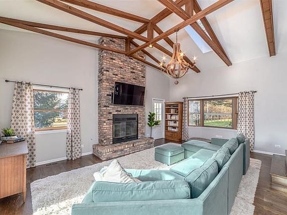 Gorgeous setting for lovely home. Huge wooded lot professionally landscaped. Many updates have been done (see under additional information). Light and bright open floor plan. Great room features truss beam cathedral ceiling with brick fireplace, Hardwood floors have been installed throughout 1st floor except for sitting living room which has new carpet. Kitchen was totally remodeled with custom made cabinets, granite counters, high end SS appliances and large eating area overlooking sitting room and atrium. Beautiful master suite with truss beam cathedral ceiling and totally remodeled bath w huge walk-in closet. Hall bath also updated. 3 spacious bedrooms have ample closet space. Carpeting was replaced on stairs and 2nd floor. Basement is finished with new carpeting and fresh paint, direct access to garage. Fenced yard has deck, shed and gazebo. 5 car garage, yes 5 car! You'll love this beautiful home and it's only 1 1 2 miles from downtown Downers Grove.