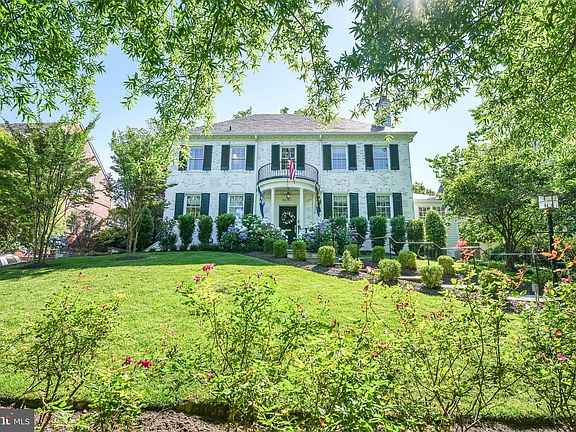 Welcome to 6001 Broad Branch Rd. NW, a stately and expansive lime-washed Colonial situated just steps from Lafayette School & Park and two blocks from Broad Branch Market in the heart of Chevy Chase, DC. This traditional brick Colonial, featuring a new slate roof, striking black shutters, and a round portico entrance, offers a gracious foyer with a striking curved stairwell. The main level boasts a spacious living room with a wood-burning fireplace, a large separate dining room with French doors leading to a rear patio, and a fully custom, light-filled kitchen with a central island, tray ceiling, custom-painted cabinets, and stainless steel appliances. Additional highlights include a cozy family room, a well-appointed home office with a gas fireplace, an oversized mudroom, and a stunning, professionally hardscaped rear patio perfect for entertaining and professionally landscaped front yard. The second floor features a luxurious primary suite with a spa bathroom and a large walk-in closet, a suited second bedroom with a renovated bathroom, two additional bedrooms, and an updated hall bathroom. The third floor offers two more bedrooms and a fourth full bathroom, while the lower level includes a family room, a second laundry room, a large storage/utility room, and a two-car garage. Located in a vibrant neighborhood with easy access to Lafayette Park, Rock Creek Park, Blessed Sacrament School, llocal markets, and a variety of shops and restaurants on Connecticut Ave, this home offers both elegance and convenience.