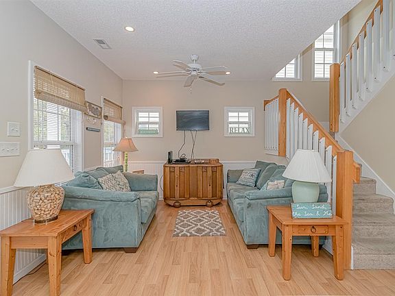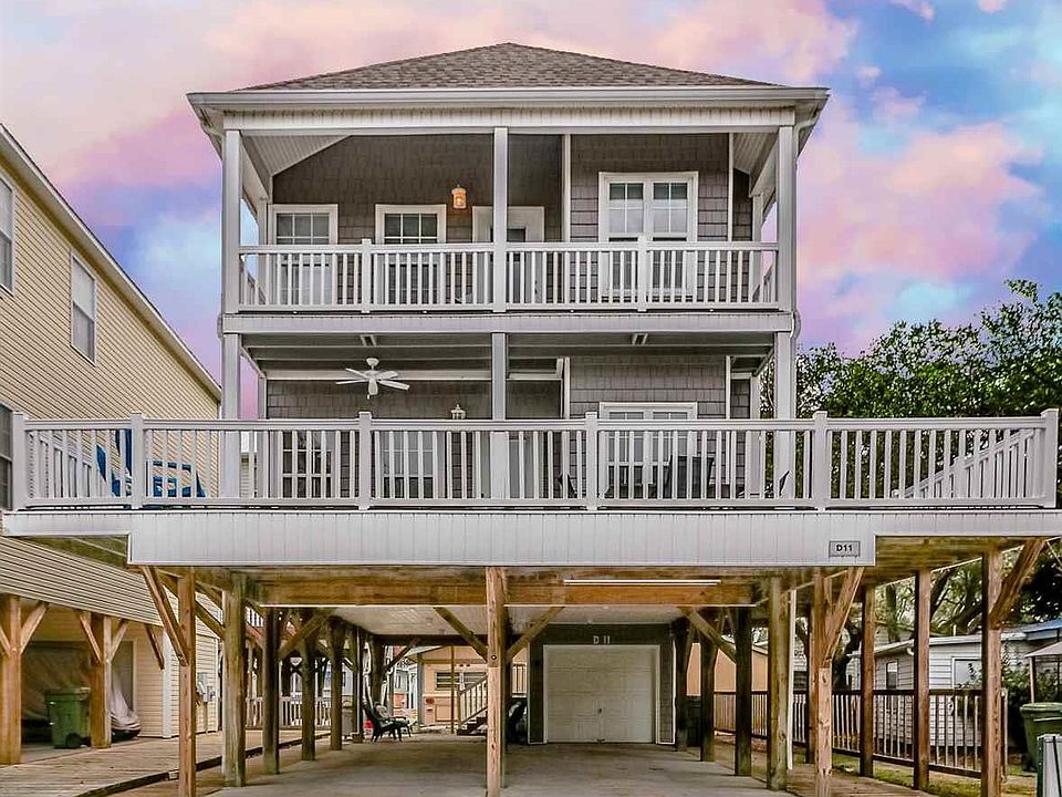 HURRY - PRICED TO SELL! This 4-bedroom, 3.5-bathroom raised-style beach home is located in the popular, gated Ocean Lakes community. Ideally located on a quiet street overlooking a canal that allows for views of wildlife enjoying the waterway from the expansive furnished decks that are suitable for sunbathing, dining or just relaxing. Home is being offered fully furnished and features a roomy open living/dining/kitchen area with durable low-maintenance wood grain laminate flooring. The kitchen is fully stocked and features a breakfast bar. Downstairs features the living room, dining area, kitchen, half bath, and a queen bedroom with private full bath. Upstairs features the master suite plus two other bedrooms with a Jack & Jill bathroom and a full-size washer & dryer. The master suite offers a private bathroom, large walk-in closet and private access to an upper level deck. The exterior of the home features an attached storage room, enclosed outdoor shower with hot & cold water, covered and driveway parking for 4+ vehicles. Other notable features of this home include maintenance free Trex decking, attractive shake style vinyl siding, wainscoting in living/dining area, bead board style kitchen cabinets, a bunk room for the kids, and tile floors in all bathrooms. All this AND VERY close to the beach – only the 6th house back from the beach. This home is completely rental ready located just a short walk from the beach as well as all the other activities that Ocean Lakes has to offer! Ocean Lakes is a 300-acre private oceanfront, gated family-friendly community with 24-hour security and award winning amenities including indoor & outdoor swimming pools, splash zone, water park with slides & lazy river, basketball courts, volleyball, shuffle board, horse shoes and much more.