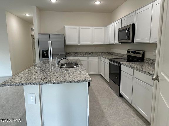 Beautiful NEW Home in PRIME East Valley location, close proximity to San Tan Valley and Queen Creek. Move-in READY! Prime lot with North South exposure overlooking scenic desert views. Featuring countless upgrades such as White Shaker Cabinetry, Granite Countertops, Stainless steel appliance package to include; Refrigerator, microwave, stove, dishwasher and washer and dryer, and 9' ceilings throughout! Spacious walk – in closet in owners suite. Energy – efficient features including dual pane windows, WIFI programmable thermostats and insulated garage doors. Front and back yard landscaping package, covered patio and porch. Neighborhood parks, playgrounds, covered picnic tables and greenbelts throughout. Spectacular mountain views, minutes from hiking trails and recreational parks.