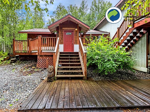 $20K PRICE REDUCTION! Checkout the 3D Immersive Tour & Floor Plan in documents for layout design.Location & Privacy! Amazing centrally located home near Finger Lake. Easy access to Palmer or Wasilla & great for commuting to Anchorage. Tucked back in the woods this home feels like a private oasis with it's long paved driveway, multi level decks, lush lawn & mature trees.The Seller is the original owner/builder (previously a general contractor) & added many custom touches throughout the house. School bus will stop at the end of the road to pick up and drop off kids. Two of the bedrooms have attached bathrooms. The other two bedrooms have a shared bathroom close by. A skylight in the dining room & large picture window flood the space with natural light. There is a pantry in the kitchen along with a spacious laundry room with room for more pantry shelving. The humongous family room features big windows, vaulted ceilings, access to the wrap around decks, a wood burning fireplace and custom concrete hearth. Just off of the family room you'll find the master suite which has three closets and an en suite bathroom. A tray ceiling, wall scones, beautiful cork floor, custom paint accents and a bay window with hidden storage give this room lots of personality. The tuck under garage with a floor drain is oversized to allow for storage shelves and work benches. The garage and basement bedroom/bathroom have in floor heat. Flooring in the arctic entry is commercial grade luxury vinyl, great for snow boots. Flooring on the stairs to the garage is heavy duty commercial flooring by Armstrong which holds up great to dirt and traffic. The back yard is fenced and there are sheds on the side of the house for extra storage. The front lawn features nugget bluegrass which is a grass seed that was developed in Alaska and certified at the Palmer Experimental Farm. The original home has a brand new roof (replaced this summer). A new septic system was installed in March of 2011. New heating system in 2000.