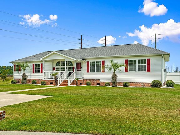 WELCOME to this spacious 3 Bed/2 Bath manufactured home located in Windsor Lakes community, conveniently located close to shopping, dining, entertainment, HWY 31, only 15 minutes to the BEACH, and 5 minutes to the waterway! Homes in Windsor Lakes community are rarely on the market. As you enter into the front door of this home you will immediately notice how spacious the home is. The living room, dining room flows very nicely into the great room and kitchen area of the home. This home is great for entertaining a large group or family. The great room has a fireplace (not hooked up to gas but can be) the kitchen has large center island with granite counter tops, double sink, tile flooring & stainless steel appliances. There is a sliding glass door off the kitchen that allows for easy access to a large private fenced in backyard. Laundry area is off the kitchen and also has another exit door giving you additional access to backyard. Crown molding throughout the home. Master bedroom has two nice spacious walk in closets, large bathroom with double sinks, garden tub and separate shower. The two additional bedrooms are very spacious with nice closet space. The second bathroom has a custom stand up shower. The roof was replaced in 2022, windows have 3M film, living room and dining area have hardwood flooring. Kitchen and laundry area have tile flooring. Great room and kitchen area have a sunken/dropped down floor. Window treatments convey. Home has brick foundation and has been de-titled. There is an irrigation system and a detached 8 x 12 shed. Concrete driveway gives you ample parking for 3/4 cars with a connected sidewalk leading up to a covered front porch. Square footage is approximate and not guaranteed, buyer and buyers agent are responsible for verification all information including square footage. Don't let this home slip away from you, schedule a private viewing with your agent today !