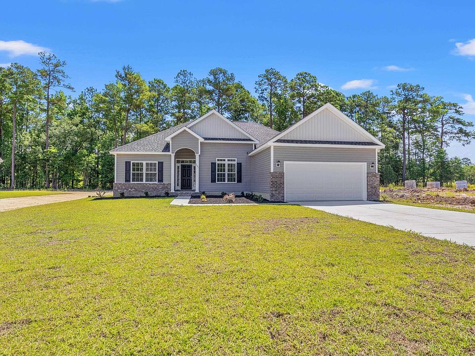 New Construction at Flossie Meadow! This is the Archway 4 floor plan that will be on .46 of an acre. This home will have a brick accent in front with a rear covered porch. The kitchen comes with 36" and 42" white staggered cabinets with crown molding, granite countertops and stainless steel appliances. The flooring will be waterproof Laminate Wood in Living Room, Kitchen, Hallways, Pantry and Dining area, Tile in the Bathrooms and Laundry Room and Carpet in all the bedrooms and closets. The bathrooms have stained cabinets with white cultured marble countertops and double sink in the master bathroom. Master Bedroom has a large walk in closet and a linen in the bathroom. Home has a completely trimmed and painted garage with drop down storage access. Located not far from shopping, medical offices and hospitals, restaurants, schools, and only 40 miles to Myrtle Beach. Building lifestyles for over 35 years, we remain the Premier Homebuilder of new residential communities and custom homes in the Grand Strand and surrounding areas. We are three-time winners of the Best Home Builder award from WMBF News Best of the Grand Strand. In 2023, we were also voted Best Residential Real Estate Developer in the Myrtle Beach Herald Readers Choice Awards and Best Home Builder in the Sun News Best of the Beach Contest. We began and remain in the Grand Strand, and we want you to experience the local pride we build today and every day in Horry and Georgetown Counties. Pictures are from another of the same model built elsewhere and may have different features/upgrades. Welcome home to Flossie Meadow!