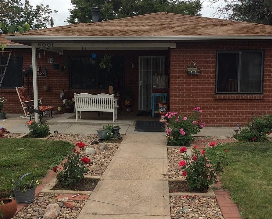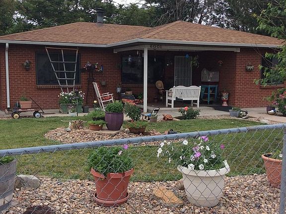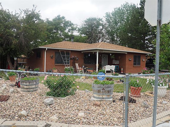 Must see sweet brick ranch, with nice breezy front porch and fenced yard. Features hardwood floors in living room and dining area with additional hardwood under existing carpet, just waiting to be revealed. Cove ceilings. Large kitchen with updated cabinets, opened to dining room w/built in counter for additional seating. Fenced back yard with cool tree shaded patio for lovely summer BBQ's. Double pane windows. New Roof less than 1 yr old. 580 sq. ft. detached garage, divided to single car and an additional room. Driveway parking has space for up to 4 cars or boat/RV. Additional shed storage. This home is in a great location with Pioneer park just across the street which has 4 baseball fields, batting cages, skate park, picnic areas and water features. Less than 1 mi. to public rec ctr. Short distance to The Shops at Northfield Stapleton Shopping Ctr.