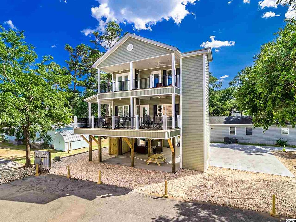 HURRY - THIS UNIQUE PROPERTY WON'T LAST LONG! NEW CONSTRUCTION ON DOUBLE LOT! This 5-bedroom, 3.5-bathroom custom built raised-style beach home is located in the popular, gated Ocean Lakes community. Ideally located in the MH section close to Lake Magnolia, beach and award winning amenities. Home is on a DOUBLE LOT! Buyer can subdivide and sell lot or build a second home on property or simply enjoy the extreme rarity in Ocean Lakes of having extra space for RV/boat storage, recreation, parking, privacy etc. Beautiful new construction with all of the most desirable features wanted in a beach home, such as ELEVATOR with stops to all levels, LVT plank style flooring, granite counter-tops in kitchen & bathrooms, stainless steel appliances, shaker style cabinetry, crown molding throughout, brushed nickel fixtures/hardware throughout, new furniture package, large tiled walk-in master shower, wall-mounted flat-screen tv's, interior features current coastal colors, covered exterior stairs, two levels of covered porches/decks, outdoor shower, concrete driveway with covered parking under house, outside entertainment area under house, enclosed storage room under house, and more - MUST SEE. Handicap accessible features include elevator, 3-feet wide doors, curbless master shower. Low maintenance vinyl siding/railing and attractive river rock landscaping. Home is being offered fully furnished including golf cart. Exterior security cameras. This home is completely rental ready located just a short walk from the beach with views of Lake Magnolia, also close to all the other activities that Ocean Lakes has to offer! Ocean Lakes is a 300-acre private oceanfront, gated family-friendly community with 24-hour security and award winning amenities including indoor & outdoor swimming pools, splash zone, water park with slides & lazy river, basketball courts, volleyball, shuffle board, horse shoes and much more.