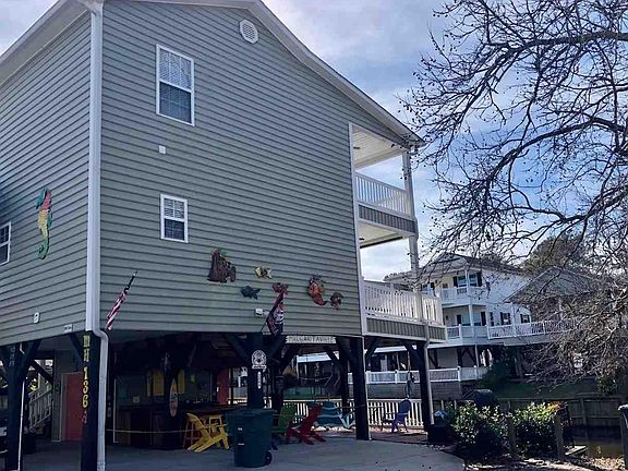 This 5-bedroom, 3-bathroom raised-style beach home is located in the popular, gated Ocean Lakes community. Ideally located in the MH section and waterfront on a canal that leads to Lake Magnolia. Only a short walk, bike or golf cart ride to beach and award winning amenities. This home features an awesome outside entertainment area under house where you can gather with friends and family at your very own tiki bar while grilling out. Bright coastal themed décor throughout. Two levels of spacious and furnished covered porches/decks overlooking the water. Enclosed outdoor shower and enclosed storage under house. Recent upgrades: NEW HVAC UNITS Sept 2020, new LVT flooring in master bedroom, bathrooms/wainscoting/doors upstairs freshly painted. Home is being offered fully furnished. This home is completely rental ready with great history of repeat renters. Ocean Lakes is a 300-acre private oceanfront, gated family-friendly community with 24-hour security and award winning amenities including indoor & outdoor swimming pools, splash zone, water park with slides & lazy river, basketball courts, volleyball, shuffle board, horse shoes and much more.