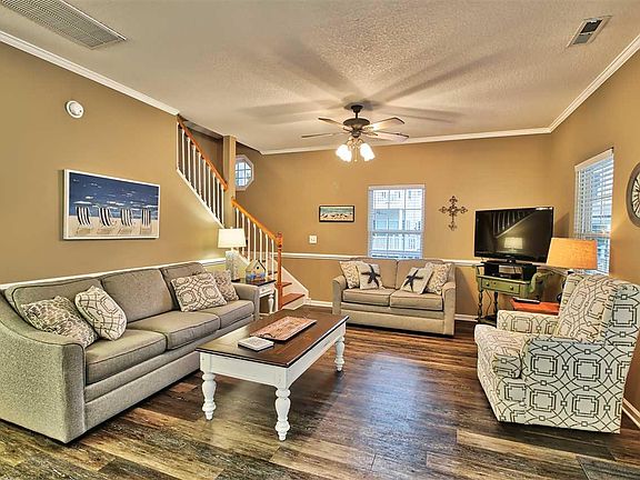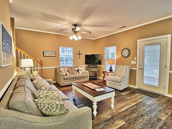 Look no further than this amazing home in the award winning Ocean Lakes. This spacious 4 bedroom and 3 bath beauty comes completely furnished. You are sure to love the open kitchen with breakfast bar, numerous cabinets along with a portable center island for added storage and counter space and large pantry. The home features 2 masters with one on each floor complete with walk in closets. The superior master is located on the 2nd floor and comes with its own entry door to a large 8 x 25 covered porch for your enjoyment. The ceiling is vaulted along with the other 2 bedrooms upstairs and comes complete with ceiling fans. The master bathroom has a vaulted ceiling, whirlpool bath tub and separate one piece shower with added light. The home has 10 foot ceilings downstairs and the ceiling texture through out is knockdown. This home has massive decks. The 1st floor covered front deck is 8 feet X 40 and the side covered deck is 8 X 25. There is also a 8 X 40 uncovered deck on the 2nd level for your enjoyment. Don't forget the outdoor kitchen, 3 bay parking for plenty of parking and an outdoor shower with hot and cold water. The shed is 12 x 10 with storage for a golf cart and beach belongings. Great location here with close proximity to Magnolia Lakes, the beautiful Atlantic Ocean and the amenity center. Are you familiar with Ocean Lakes? Ocean Lakes is a 300 acre ocean front complex with 24 hour security. You are sure to love all of the amenities that Ocean Lakes has to offer. Some of the amenities included are an indoor and outdoor swimming pools, basketball courts, volleyball, shuffle board, horse shoes and much much more. There is an awesome water park complete with lazy river and slides for all owners and guests to enjoy. Short term rental is allowed in Ocean Lakes. Please do not miss this property. View today. Square footage is approximate and not guaranteed. The buyer is responsible for verification.