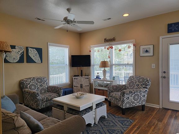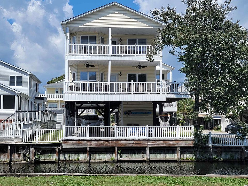 Location, location, location. This beautifully furnished beach house has an ocean view, is on the lake and around the corner from the pools and waterpark. This home features a lovely kitchen with quartz countertops and it's fully stocked. The open floor plan is perfect for family gatherings. Live your best life relaxing on the large deck taking in the Carolina sunshine enjoying the lake view. There are two owner's suites. There is one on the main floor with a private bath featuring a garden tub and separate shower. Upstairs is another owner's suite with direct access to another deck and an ocean view. There are two other bedrooms and a full bath on the 2nd level. There is an outdoor shower, which is a must for after a trip to the beach. There is also a large storage room which fits a golf cart and... the golf cart comes with the home. This is a Grade A rental home. Plenty of parking with long private driveway. Are you familiar with Ocean Lakes? Ocean Lakes is a 300 acre oceanfront community with 24 hour security. You are sure to love all of the amenities that Ocean Lakes has to offer. There is a waterpark with a lazy river and slides, indoor and outdoor swimming pools, basketball courts, volleyball, shuffle board, and so much more. Short term rental is allowed in Ocean Lakes. Square footage is approximate and not guaranteed. Buyer is responsible for verification.