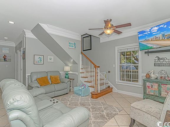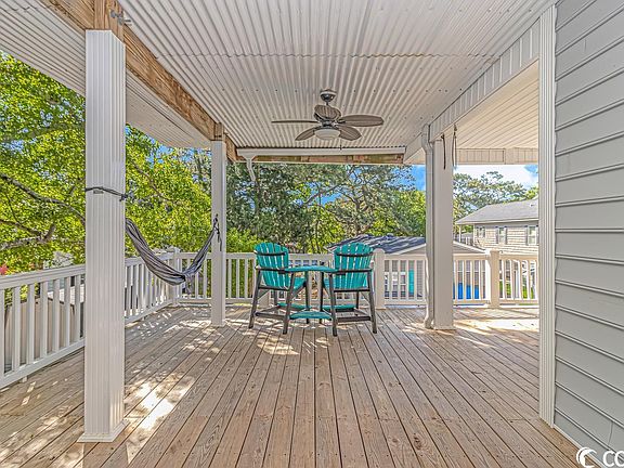 Best deal in Ocean Lakes! Price Improvement! Impressive 5 bedroom 3 bath home located in the award winning Ocean Lakes Family Campground! Here at site MH-42B, you will be sure to love the peace and tranquility the home offers. You never have to worry about parking as this home has plenty! The home offers two access points; one entry is from Clam Lane and the other is from the private service road in front of the home. As you enter the home, you're greeted by a spacious living room that offers durable ceramic tile flooring, a generously sized eat-in kitchen, and 2 guests bedrooms along with a hall bathroom downstairs. All the main living areas have durable ceramic tile flooring while the bedrooms offer beautiful hardwood flooring. Upstairs there are 3 additional bedrooms along with 2 bathrooms. Located right off the main staircase of the home, there is an upstairs wet bar area that opens up into the laundry area of the home. The master bedroom spans the entire front of the home and has a door that leads out to the oversized upstairs deck and balcony. The master bath just recently was remodeled with a beautiful ceramic tile shower! With two oversized side decks, one being completely covered and the other perfect for sunbathing, this home was designed for outdoor entertainment! Perfect for anyone, this home is ideally positioned to enjoy summers by the South Carolina Coast. Home is conveniently located close to all the amazing amenities Ocean Lakes has to offer! Amenities included are indoor/outdoor pools, lazy river, waterpark, mini-golf, arcade, basketball courts, volleyball courts, and much more! Come check out this property today! All measurements are approximate and not guaranteed. Buyer responsible for verification.
