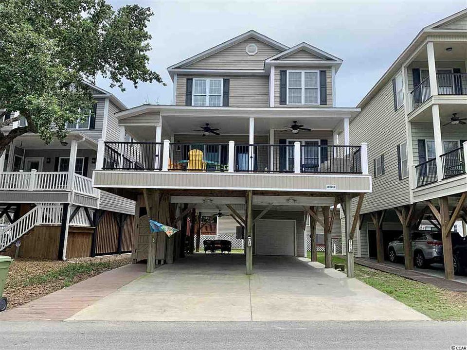 IMMACULATE, CUSTOM BUILT 5 BED/3.5 BATH RAISED BEACH HOUSE IN OCEANFRONT OCEAN LAKES! Your Dream Home Has Arrived! Indoor and outdoor living at its best in this open concept beach home w/ large covered deck and stairs and tons of upgrades like, stunning granite countertops, rich custom cabinets, gorgeous scratch resistant wood plank flooring throughout, beautiful hardwood stairs, bright ceramic tile in baths, detailed chair and crown molding, and flat screen TVs in all bedrooms. Home is located in the highly desired MH section of Ocean Lakes and includes an additional outdoor space behind the home perfect for sunbathing, grilling or your pets. Property is being sold fully furnished and includes your very own golf cart. Excellent rental history. Must honor 2020 rentals. There is no HOA in Ocean Lakes however, the house is located on leased land, which is payed in two semiannual installments due in January and July. Amenities abound in Ocean Lakes' gated community and include almost one mile of pristine white sand beach, 24 hour security, trash pick-up, free basic cable, indoor/outdoor swimming pools, water park/slides, lazy river, 2 full size basketball courts, volley ball, miniature golf, fire pit, shuffle board, horseshoes, corn hole, ping-pong, Sandy's Down-under skatepark, recreation building, arcade, general store, golf cart rentals, Sandys Meet & Eat restaurant and more! Homeowners and guests receive free admission to all amenities.
