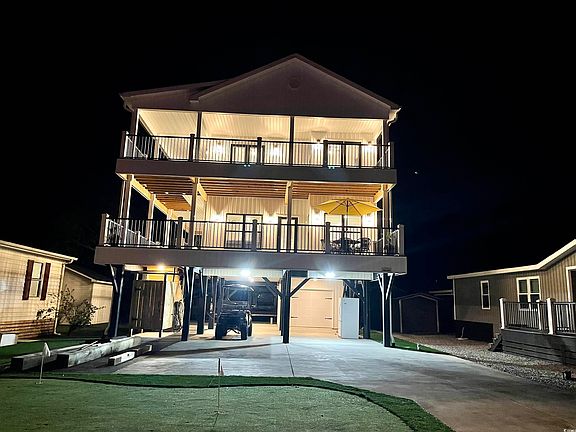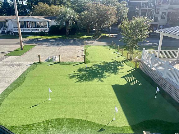 your dream home just came back on the market. Introducing "Putt-ing on the Beach!" This Unique new construction home, completed in 2023, is virtually maintenance free and sits on an extra large double lot (by my count parking for 12). An easy walk to the beach, park and Rec center. Well-appointed with loads of upgrades including a private, 7 hole, putt-putt green in the front. Ditch the lawn mower because this home is surrounded by astroturf. 5 bedrooms, 4 1/2 baths with 1445 SQUARE FEET OF PORCHES that were constructed with Trex composite decking, another low maintenance feature (Double front and side covered porches). Walk through the front door and fall in love with the attention detail. Bright furnishing and decor, hand chosen to bring the beach indoors. The gourmet kitchen features staggered white cabinets with crown molding, solid surface counter tops, a large center island with seating for 4 and Samsung appliances. The owner's suite is located on the first floor and boasts a beautiful walk-in shower, dual vanities and built in cabinets for extra storage. Walk upstairs and you will find 2 bedrooms to the rear of the home each with vaulted ceilings and share the hall bathroom. To the front of the upstairs, you will find 2 master suites each with its own private bathroom, vaulted ceilings and French doors that lead out to the massive upper deck with views for days. Luxury vinyl plank flooring though-out, which is not just aesthetically pleasing but also durable and waterproof. A 2002 Club Car with new batteries will convey with home. Ocean Lakes family Campground has top-of-the-line amenities, include both an indoor and outdoor pool, lazy river, dump zone for your toddlers, arcade, mini golf, dog park, and private access to the beach. Voted best family campground year after year and winning numerous trip adviser awards and still family owned. Ocean Lakes has a full summer schedule for all ages and a full winter schedule to meet all your retirement dreams as well. Come and take a look today. Welcome home!