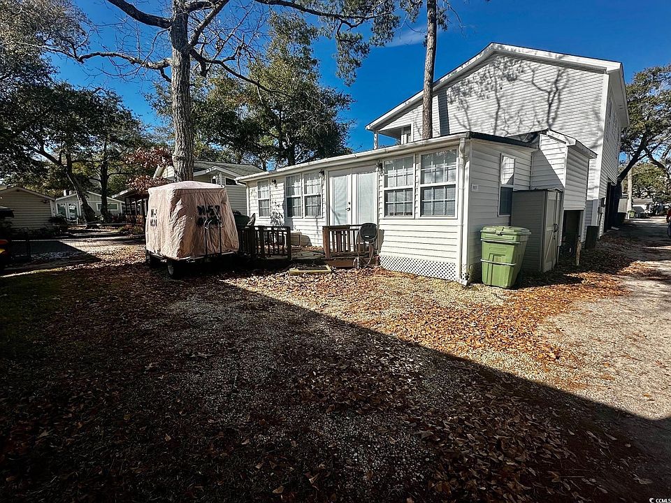 Large lot in Ocean Lakes estimated at 41x32, seller is selling as is, perfect fixer-upper or a tear down to build the home of your choice. Buyer is responsible to meet with compliance for lot dimensions and building guidelines. This is an addition to a 5th wheel, the entire 5th wheel has been enclosed and can be removed to remodel the existing structure or tear it down to rebuild. Home has all NEW windows. Cart is not included but negotiable.
