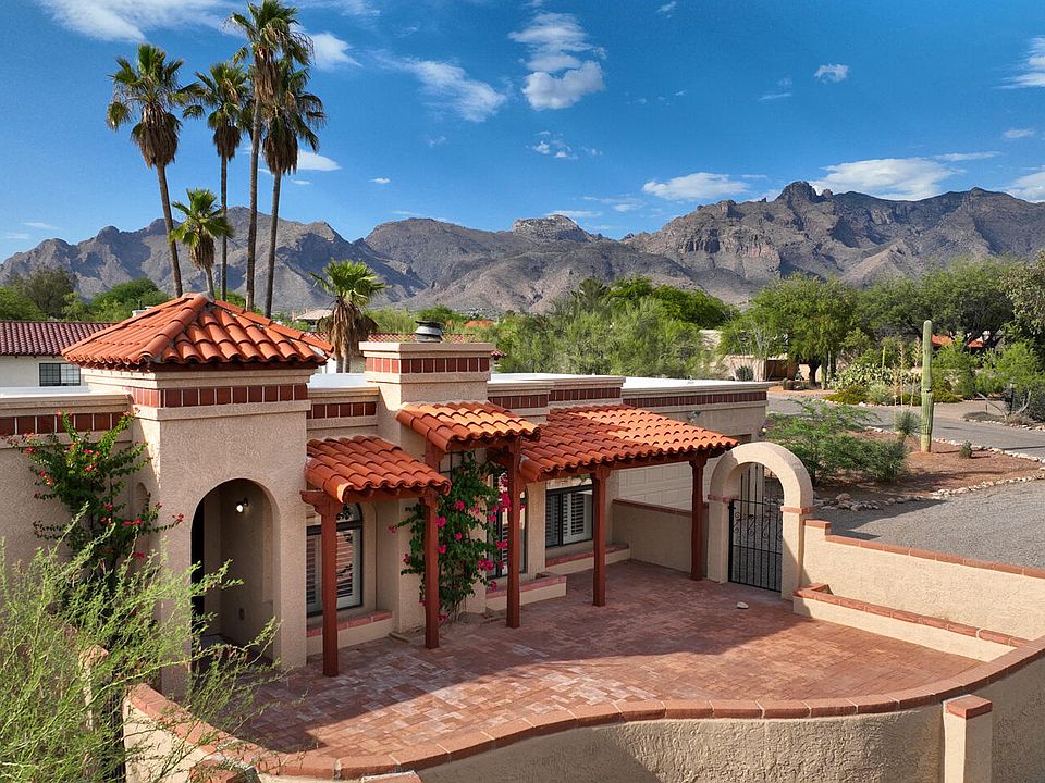 Charm & character abound in this Santa Fe w/guest house. Located on an interior Shadow Hills st w/access to multiple main arteries, this property offers Saltillo tile flrs, arched entries & doorways and Spanish tile accents & niches while also including high ceilings, custom alder cabinetry & doors & captivating Catalina Mtn Views. A charming fireplace enhances the living rm, while the kitchen offers a custom island/breakfast bar, S.S. appliances & granite counters. The private backyard provides a sparkling pool & spa separately fenced no care grass & mature trees & vegetation all off an extended covered patio. The newer guest house offers numerous opportunities w/2 large mstr suites, 2 bathrooms w/walk-in wheel chair accessible showers, living rm, laundry rm, kitchen, & private patio.