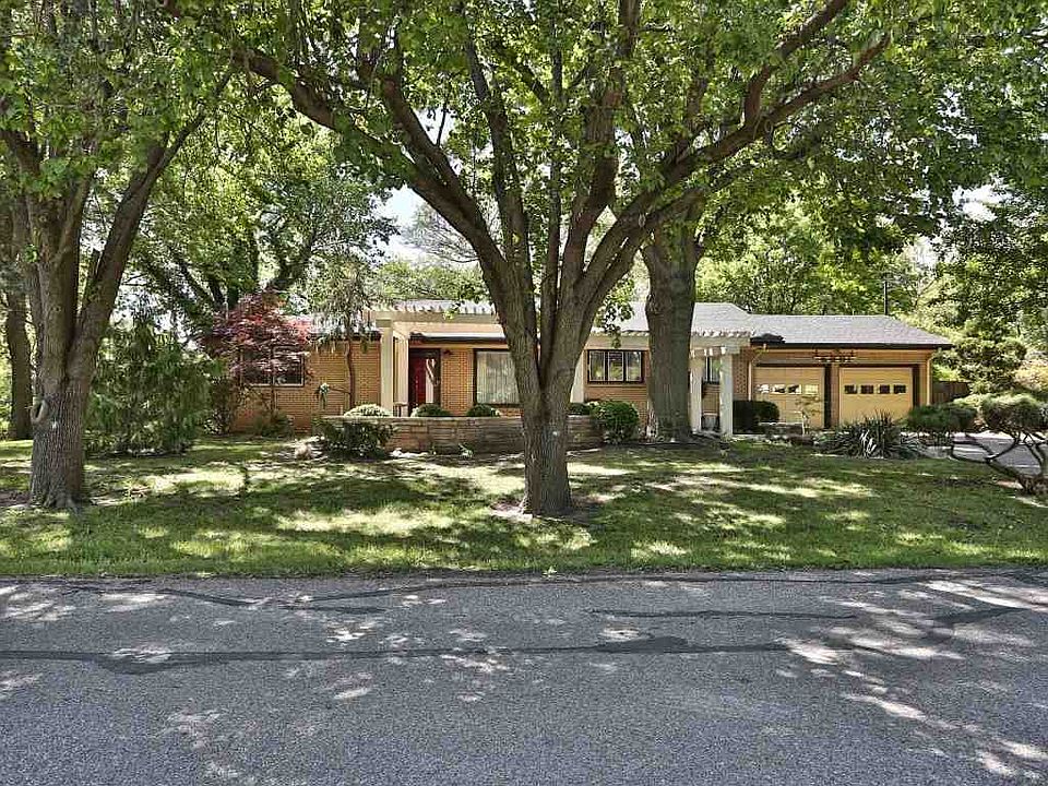 This is truly a unique 1957 built ranch home on an over 3/4 acre very wooded lot. There is a huge sycamore tree on the property thought to be the oldest in Kansas and potentially 185 years old. This home was the property of a master gardener. There are two greenhouses, Koi pond, Chinese architecture garden house, and a real outhouse for garden show guest in the yard. The “bones” of the garden are there, but there is work needed to restore it to it’s former grandeur. There are two greenhouses on the property as well. The home is a nice retro all brick ranch style house. The kitchen features original working turquoise wall oven and cook-top right out of 1957! There are 3 bedrooms upstairs, and two vintage era bathrooms, one in pink and black. The majority of the main floor of the home is carpeted, but it is believed there is original hardwood floors in most of the home. The living room/den area features a beautiful double sided wood burning fireplace. One of the most unique features of the home is a large heated solarium on back of the house with large windows overlooking the gardens, patio and Koi ponds. This room had all manor of tropical plants that thrived year round at one time. The basement is bright and airy with new paint and new laminate floors throughout. There is a large game room with a wet bar. There is a nice sized separate office as well. There are two furnaces, one is believed to have heated the solarium but the seller does not represent that it works at this point. The house furnace is newer and in good working order. Highland roofing just completed roofing for the house and solarium, including mostly new decking. This is truly a lifestyle property ready made for the master gardener. Schedule a time to see this house and make it your home.