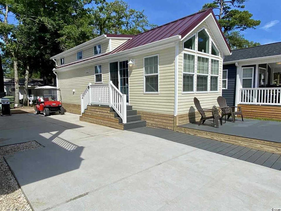 JUST LISTED! BRAND NEW TINY HOME LOCATED IN THE HEART OF IT ALL IN OCEANFRONT OCEAN LAKES! This is it! Enjoy maintenance free, energy efficient, beachside living at its best in this adorable new Skyline Park Model 500CTP with tall cathedral ceiling, beautiful water/scratch resistant wood laminate flooring, skylights, stainless steel appliances w/ gas stove, washer/dryer, spacious master bedroom w/ king size bed, loft bedroom w/ queen size bed, sleeper sofa w/ privacy sliding door, gorgeous bath with walk-in shower, Trex decking, and a new paved driveway. This home has everything you need for your beach getaway and offers excellent rental revenue! Includes everything you see including, new gas grill and your very own golf cart! Now Showing! There is no HOA in Ocean Lakes. However, the house is located on leased land, which is payed in two semiannual installments due in January and July. Amenities abound in Ocean Lakes' gated community and include one mile of pristine white sand beach, 24 hour security, trash pick-up, indoor/outdoor swimming pools, new large water park/slides, 2 full size basketball courts, miniature golf, fire pit, shuffle board, horseshoes, corn hole, ping-pong, Sandy's Down-under skatepark, recreation building, arcade, general store, golf cart rentals, Sandys Meet & Eat restaurant and more!