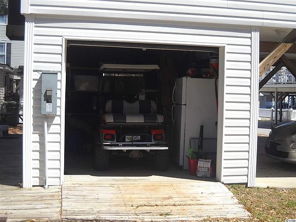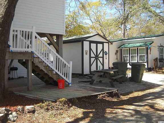 Tastefully decorated, and completely furnished, raised beach house located within the prestigious and highly sought after Ocean Lakes Campground, named 2017 Best Mega Park of the Year!! Gorgeous tree shades this home with 5 bedrooms & 3 full baths. The spacious master BR is on the 1st floor. Large eat-in kitchen with breakfast bar and pantry. White cabinets, smooth top stove, stainless refrigerator with ice/water in door, dishwasher and built-in microwave. Plenty of counter space and lots of natural sunlight throughout this home. Lots of windows in this home-all vinyl tilt with wide slat blinds. All floors on first level are tile except MBR. All bedrooms are carpeted and second floor BR's have vaulted ceilings and fans. All bedrooms have wall-mounted flat screen TV's, and various bedroom sets. MBR has a king bed, two BR's with queen beds, one BR with a full bed, and one BR has two bunk beds with full on bottom and twin on top. Sleeps 16. LR has two sitting areas, leather couch & matching recliner & flat screen TV. Two of the second floor bedrooms have door access to the front deck. All three baths have tub/showers and one of the second floor baths has a stackable washer/dryer. Large front deck with vinyl railings and wood flooring. All outside furniture and picnic table to remain. Outdoor shower and attached storage. Plenty of under-house parking. There are no HOA fees however there is an annual lease which covers your basic cable TV, garbage removal, security and access to all pools, water-park and all amenities that Ocean Lakes has to offer. Don't miss this opportunity to own a home along a pristine part of the beach. Easy golf cart access to shopping, restaurants, activities, and so much more. Ocean Lakes is a 310 acre ocean front complex with 24 hour security, nearly a mile of oceanfront, Outdoor Pool, Sandy Harbor Water Park, Sandy Mart, Meet n’ Eat. Come play Basketball, Shuffle Board, Horse Shoes, enjoy their award-winning Recreation program. The gated campground also features an RV Center with a store and repair technicians; Golf Car Sales, Service and Rentals; camper storage and 24/7 security patrol. The 310-acre park is open year round . Short term rentals are allowed in Ocean Lakes. Measurements are approximate and can be verified by buyers.