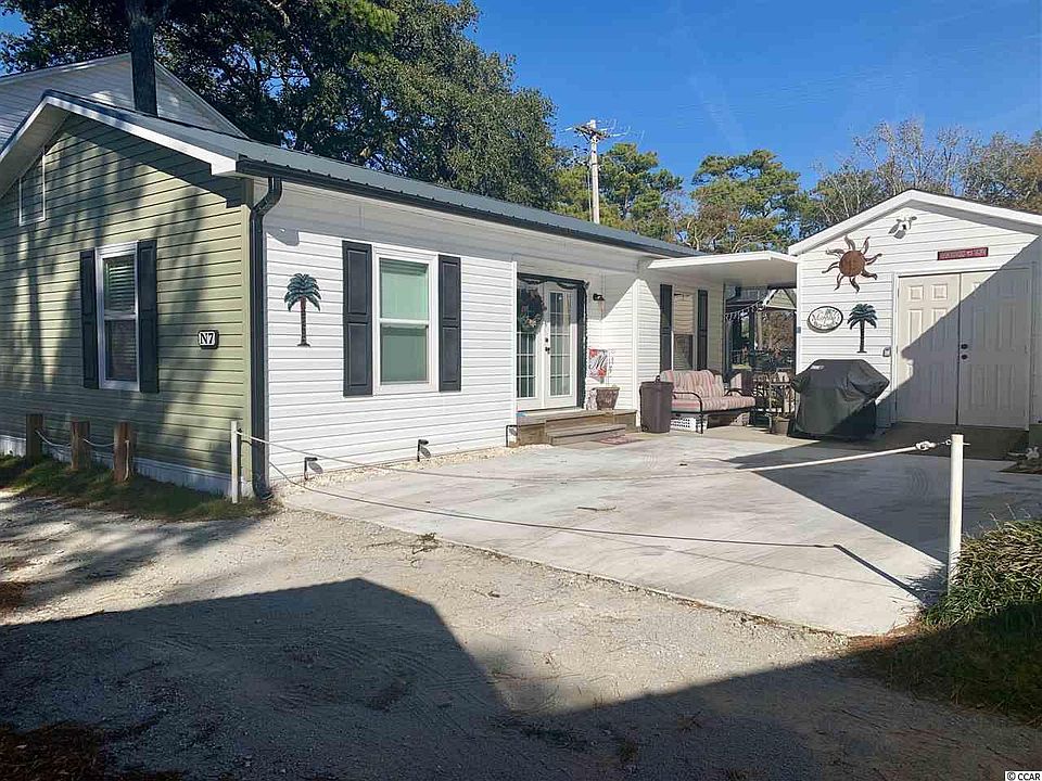 STICKBUILT 2 BED/1.5 BATH BEACH COTTAGE LOCATED IN THE HEART OF OCEANFRONT OCEAN LAKES! Custom built in 2015-16, this beach house has it all including, tall cathedral ceilings, granite countertops, subway tile backsplash, beautiful wood laminate flooring, french doors, metal roof, gutter system, 2x12 sub flooring, 2x6 exterior walls, AC cooled workshop/garage, paved driveway and a fantastic covered outdoor lounging area with flat screen TV. Property is being sold partially furnished and includes, kitchen appliances, washer/dryer, furniture, decor, faux plantation blinds, flat screen TVs and your very own Club Car golf cart with new bluetooth stereo system and speakers. Home has never been rented. Now Showing! There is no HOA in Ocean Lakes however, homes are located on leased land, which is payed in two semiannual installments in January and July. Amenities abound in Ocean Lakes' gated community and include almost one mile of pristine white sand beach, 24 hour security, trash pick-up, free basic cable, indoor/outdoor swimming pools, water park/slides, lazy river, splash zone, 2 full size basketball courts, miniature golf, fire pit, corn hole, shuffle board, horseshoes, ping-pong, Sandy's Down-under skatepark, recreation building, arcade, Sandy Mart, golf cart rentals, Sandys Meet & Eat restaurant and more! Homeowners and guests receive free admission to all amenities!