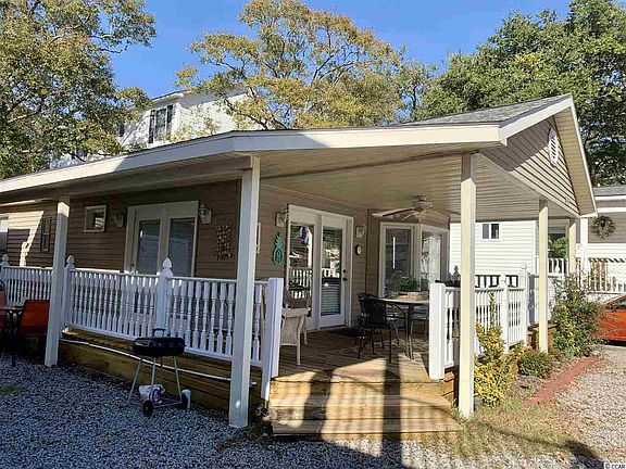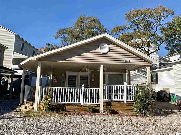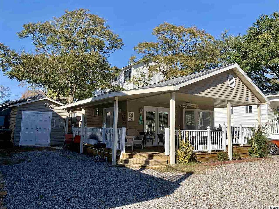 NEW TO MARKET! ADORABLE 2 BED/1 BATH BEACH BUNGALOW WITH LARGE COVERED PORCH IN OCEANFRONT OCEAN LAKES. Looking for your beach getaway? This is the one for you! Enjoy an open concept floor plan with laminate wood flooring in family, dining, hall and bedrooms and tile flooring in the kitchen and baths. Kitchen offers plenty of counter space and cabinets for storage and comes with all appliances. Family room is large and airy with tall ceiling and high windows for natural light. A new roof was installed in 2019 and a new HVAC in 2020. Fantastic outdoor living with large covered porch, ample parking and a detached garage/workshop to store golf cart and all your beach gear. Property is being sold fully furnished with option on the new golf cart. Home also includes an interior laundry room with washer/dryer. Excellent rental history! Located on highly desired Sea Urchin Drive within a short walk to all Ocean Lakes amenities including Sandy's Meet & Eat diner, general store, waterpark, lazy river, pool, recreation center and the beach! There is no HOA in Ocean Lakes. However, the house is located on leased land, which is payed in two semiannual installments due in January and July. Amenities abound in Ocean Lakes' gated community and include one mile of pristine white sand beach, 24 hour security, trash pick-up, indoor/outdoor swimming pools, new large water park/slides, lazy river, 2 full size basketball courts, miniature golf, fire pit, shuffle board, horseshoes, corn hole, ping-pong, Sandy's Down-under skatepark, recreation building, arcade, general store, laundromat, golf cart rentals, Sandys Meet & Eat restaurant and more!