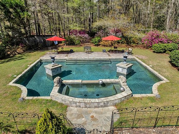 Step into luxury living with this breathtaking custom-built French Provincial estate, a true showplace that blends elegance, privacy, and top-tier amenities, perfect for those who love to entertain. Nestled on 3 private, fully fenced acres in NW Albany, this home is a masterpiece of design and craftsmanship, offering unmatched beauty inside and out. As you approach, a commercial-grade entrance welcomes you into a stunning property where impeccable landscaping and vibrant azaleas in full bloom create an enchanting first impression. A spacious parking pad, side-entry two-car garage, and additional covered parking ensure convenience for you and your guests. Inside, grand architectural details set the tone for elegance. The custom French Provincial design is highlighted by charming crank-out custom windows, adding both beauty and functionality. The gourmet kitchen is a chef's dream, featuring granite countertops, a massive kitchen island, a Sub-Zero refrigerator, and a top-of-the-line Thor gas cooktop—a space that exudes sophistication and warmth. The open family den, defined by two fireplaces, flows seamlessly into the formal dining area, offering breathtaking views of the gunite pool, statues, and lush gardens. Throughout the home, accent lighting enhances the exquisite details, creating a refined yet inviting atmosphere. Designed for both comfort and sophistication, the primary suite is a retreat unto itself, boasting expansive natural light, dual hall closets, a third closet in the bedroom, and a luxurious master bath with custom cabinetry and a stunning shower. The second bedroom is spacious as well as the third bedroom, featuring built-ins, is ideal for a home office or private library. Practicality meets luxury with a huge laundry room that offers abundant storage space, making daily living effortless. Additional storage extends into the attic space, accessed from the garage, which is floored and impressively spacious—a rare and valuable feature. This home is not just beautiful—it's flawlessly maintained. A whole-house generator ensures uninterrupted comfort, while a recent inspection confirms its pristine condition. Statues and columns throughout the home and garden add a timeless elegance, completing this one-of-a-kind estate. From the welcoming grand foyer to the resort-like backyard, complete with an unbelievable poolside setting, this estate is the ultimate luxury retreat.