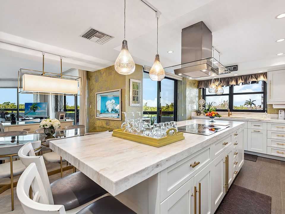 Welcome to this thoughtfully reimagined 2-bedroom-plus-den condo in Pelican Bay, one of Naples premier beachfront communities! From the moment you step inside, wall-to-wall sliders flood the home with natural sunlight, creating a warm and inviting atmosphere. The updated open-concept kitchen exudes timeless sophistication, featuring white shaker cabinets, a built-in coffee station, a spacious center island, and sleek gold fixtures- all designed for effortless entertaining. Step outside to over 500 square feet of wrap-around balcony space, where breathtaking preserve views bring nature's beauty right to your doorstep. The den features a custom built in desk and Murphy bed, blending beauty and functionality. The recently updated primary bathroom offers a spa-like retreat, perfect for unwinding. And just steps from your building, Pelican Bay's convenient tram station awaits, ready to whisk you away to sunbathe on your private beach, or enjoy sunset dining from one of two beachfront restaurants. As a resident of Pelican Bay, you'll also enjoy exclusive access to a state-of-the-art fitness center, a premier racquet center, and a vibrant community center. This is more than a home—it's an unparalleled lifestyle in one of Naples' most sought-after communities.