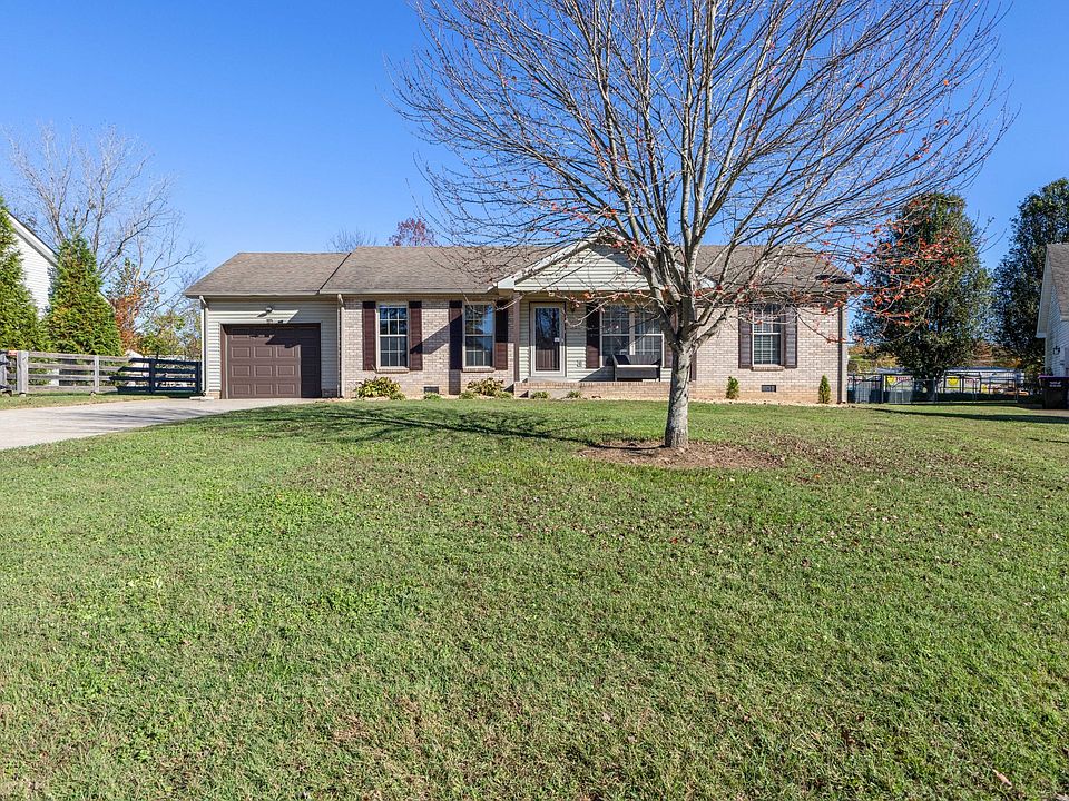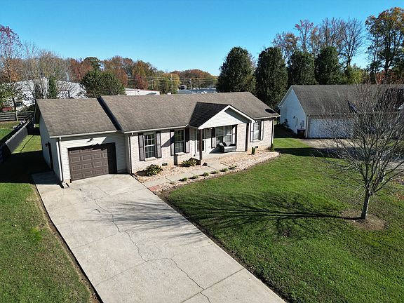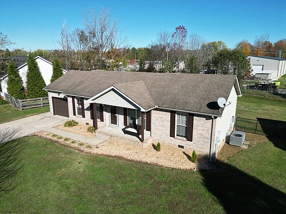 Incredible 3 bdrm 2 bath home with attached & detached garages and a fenced backyard! You will fall in love with this bright and open concept home which features vaulted ceilings, covered front porch, large back deck (perfect for hosting friends & family) & lvp flooring throughout. This is a split bedroom floor plan and has a great owners ensuite with tray ceiling. The fenced yard has two large gates for easy access. Plenty of garage storage space for cars, tools, hobbies, workshop you name it! The concrete driveway is large enough to park multiple cars. Tucked away in a quiet culdesac with No HOA! Opportunities like this don't come around too often. Just mins off I-65 with easy access to either Nashville or Kentucky.