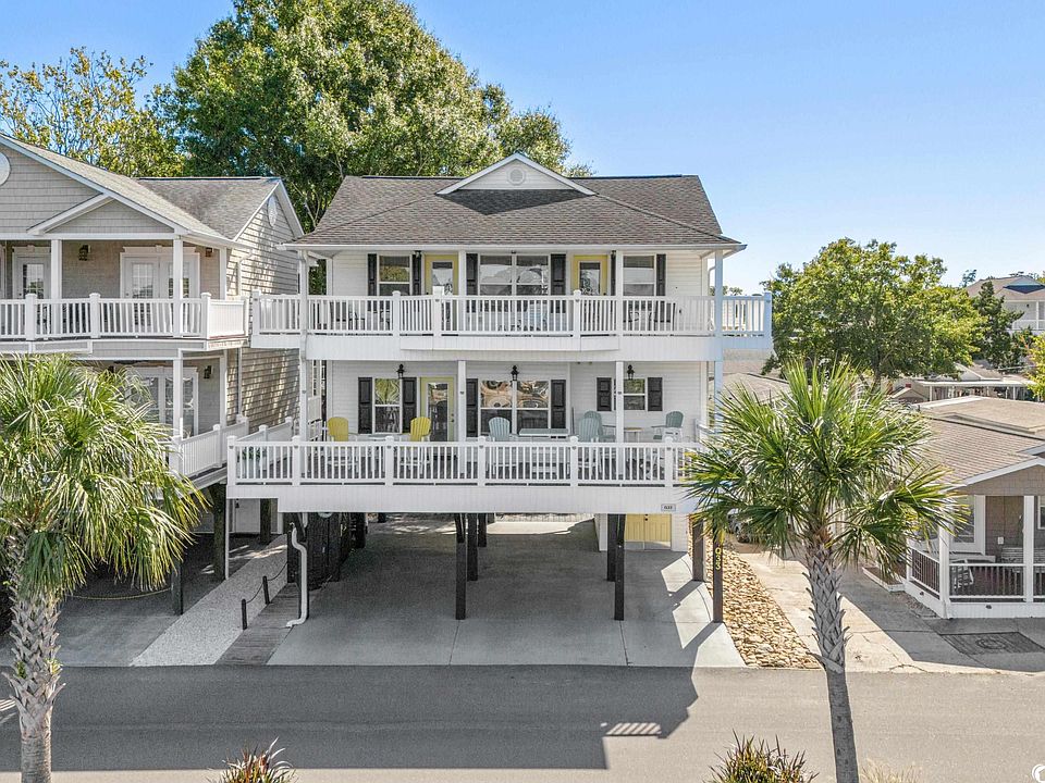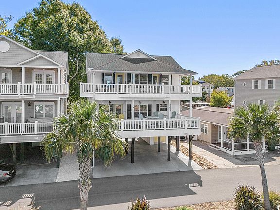 Lake front raised beach house. This is 4 bedroom and 3.5 bath home is situated on East Sandlapper Drive with beautiful views of both Sandlapper Lake and Lake Emily. This home is conveniently located close to all of the amenities that Ocean Lakes has to offer. Plenty of parking under the house and a spacious outside entertaining area underneath the house. The home has 2 large decks and breathtaking lake views. Entering the home you are greeted by a large open concept living, kitchen, and dining space. The kitchen offers plenty of cabinets and counter space. Downstairs is a master bedroom with its own private ensuite. Upstairs, there are 3 additional bedrooms along with 2 more baths. Laminate flooring throughout the main living areas and beautiful luxury vinyl plank flooring in the bedrooms. The upstairs master bedroom spans the entire front of the home offering a large sitting area, vaulted ceilings and double vanity in the primary bath. The upstairs balcony offers beautiful views of the water fountains of Sandlapper Lake and Lake Emily. Being sold fully furnished do not let this home pass you by. Home is conveniently located close to all the amazing amenities Ocean Lakes has to offer. Amenities included are indoor/outdoor pools, lazy river, waterpark, mini-golf, arcade, basketball courts, volleyball courts, and much more! Come check out this property today. All measurements are approximate and buyer is responsible for verification.