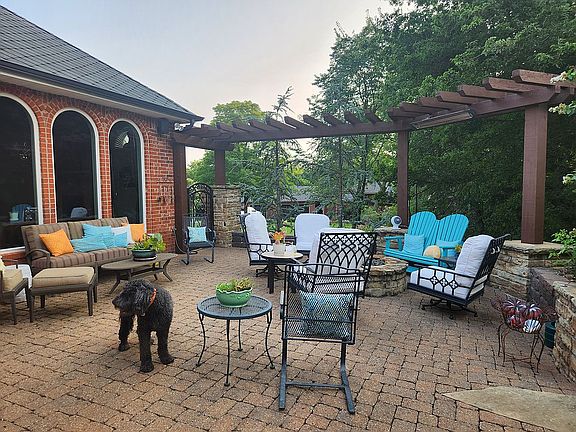 Master suite adjoins extra large dressing closet by California Closets, wood floors in all living areas, wood-look tile in utility room for safety. 3 car garage facing away from street. Roof approximately 7 years old. Great heated and indirectly-lighted outdoor patio area with gas fire pit, bar seating and dining area overlooking golf green and recirculating creek with waterfall. Zoned heating and air. Gas fireplace in great room. Gated River Oaks subdivision near River Oaks Golf Club. School bus stop for Oakdale Elementary and Mid-High is located across the street. Showings by appointment only. No yard sign.