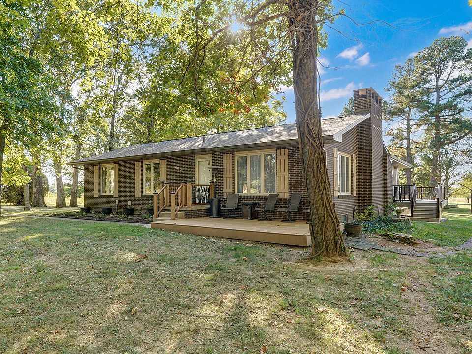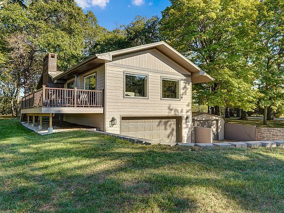 Welcome to a truly one-of-a-kind property, an extraordinary 5.18-acre retreat offering unmatched space, comfort, and craftsmanship at every turn. The beautifully maintained home features four bedrooms, three full baths, and a three-car attached garage, complemented by an additional six garage bays and a two-bay oversized carport for a total of eleven covered parking spaces. Whether you need room for vehicles, equipment, recreational toys, or workshop space, this property delivers in a way few others can!Step inside and instantly feel the care and quality that went into every detail. The entire home has been professionally remodeled with elevated finishes and thoughtful design throughout. The formal dining room sets the tone for the interior and leads to the stunning kitchen, complete with brand-new appliances, excellent storage, and a warm, inviting layout. From there, the home opens into a spectacular living room that ranks among the best entertaining spaces you'll find! Featuring vaulted wood-paneled ceilings, expansive windows flooding the room with natural light, and sweeping views of the treed acreage behind the home. Built using ICF construction, this space offers incredible insulation, sound control, and durability.The main level includes three comfortable bedrooms, one of those a primary suite with its own private full bathroom, plus an additional full bathroom for the guest rooms. The finished walkout basement adds a second primary bedroom with an enormous walk-in closet you have to experience! This lower level is designed for both relaxation and entertainment, offering a large full bath, a wet bar, surround sound, generous storage, and a versatile living area perfect for gatherings, game nights, or extended guests.The exterior spaces are equally impressive. Two low-maintenance composite decks provide peaceful places to unwind, while the fully covered outdoor entertaining area offers the perfect open-air hangout.
