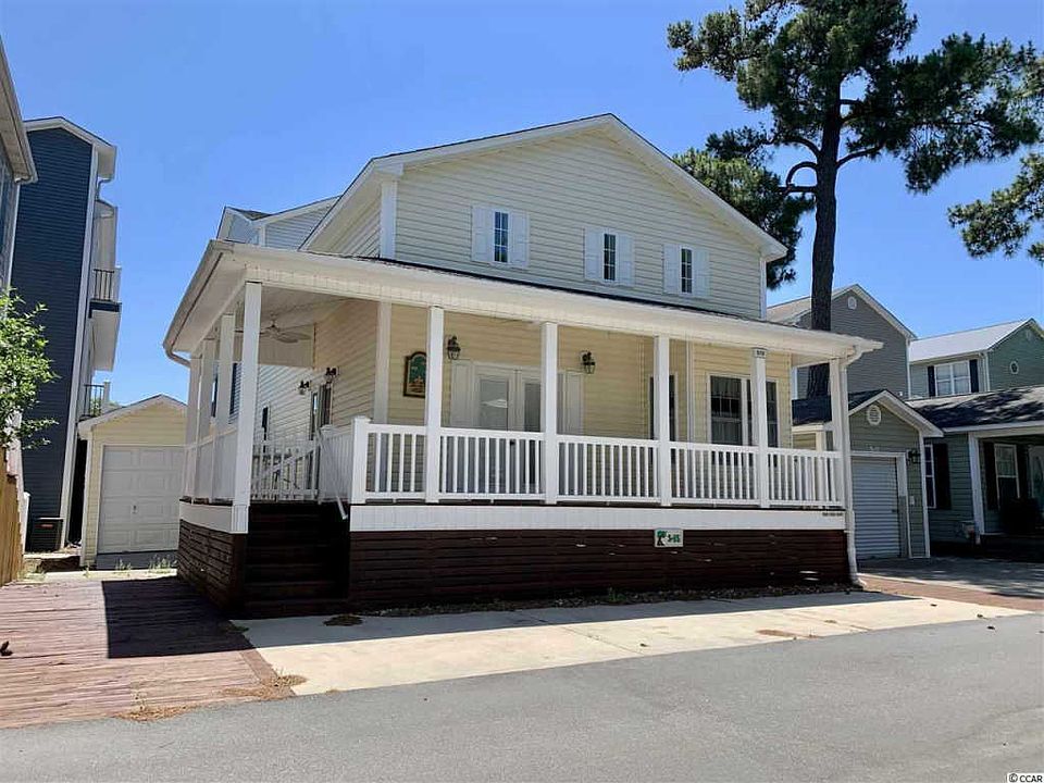 JUST LISTED... HIGHLY SOUGHT GROUND LEVEL, 2 STORY 4 Bed/2 Bath BEACH HOUSE w/ WRAP-AROUND PORCH and 1,590 sq. ft. of HEATED LIVING SPACE. Located in popular, award winning, oceanfront Ocean Lakes, this home is sq. ft. - for - sq. ft. best value in the entire resort. No steep stairs to enter this fantastic beach house! Enter the home to a jaw dropping open concept living space with 20' cathedral ceiling, large family room, spacious kitchen, roomy breakfast bar and an inviting dining area that is sure to lure the whole family. Property is being sold completely furnished and includes a new stainless steel range, new washer/dryer and a new water heater. Home offers great outdoor living with large wrap-around porch, patio area, outdoor shower, paved drive and golf cart garage to store your golf cart and all your beach gear. Beautiful family home with excellent rental history! Great revenue earning investment! HVAC and roof were replaced in recent years and are in great condition. Must honor 2020 rentals. Home is located on leased land, which is payed in two semiannual installments due in January and July. No HOA. Amenities abound in Ocean Lakes' gated community and include almost one mile of pristine white sand beach, 24 hour security, trash pick-up, free basic cable, indoor/outdoor swimming pools, water park/slides, lazy river, 2 full size basketball courts, volley ball, miniature golf, fire pit, shuffle board, horseshoes, corn hole, ping-pong, Sandy's Down-under skatepark, recreation building, arcade, general store, golf cart rentals, Sandys Meet & Eat restaurant and more! Homeowners and guests receive free admission to all amenities.