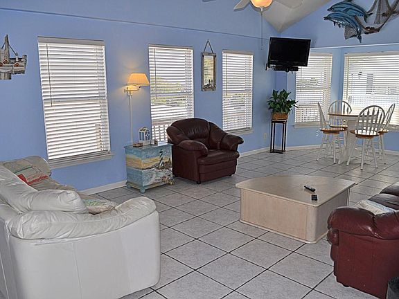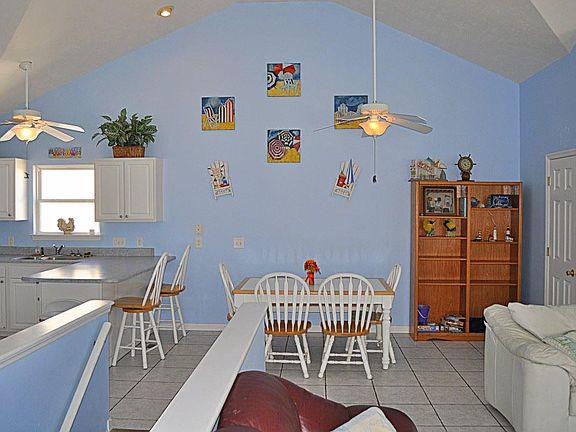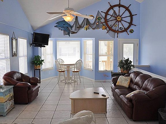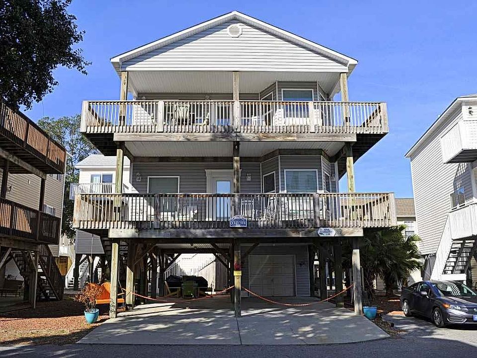 “Ocean View” is a magnificent raised beachhouse-style vacation home located in Ocean Lakes Family Campground boasting both lake and ocean views from both of its covered wraparound decks. It accommodates up to 13 guests at a time with 5 bedrooms and 3.5 baths, and its inverted floor plan puts the bedrooms on the lower floor making them much easier to reach after your guests are worn out after a long day enjoying all of the entertainment, shopping, and dining opportunities that the Grand Strand has to offer. The upper level has an open floor plan, enhancing the spacious feeling of the capacious kitchen, dining, and living area and allowing natural light from all of the large windows to fill the space. Ocean Lakes amenities include indoor and outdoor pools, an 18-hole miniature golf course, a rec center, outdoor playgrounds, an arcade, golf cart rentals, a grocery and gift store, and a mile of sandy beach. Don’t miss out on your chance at this big beauty; book a showing now!