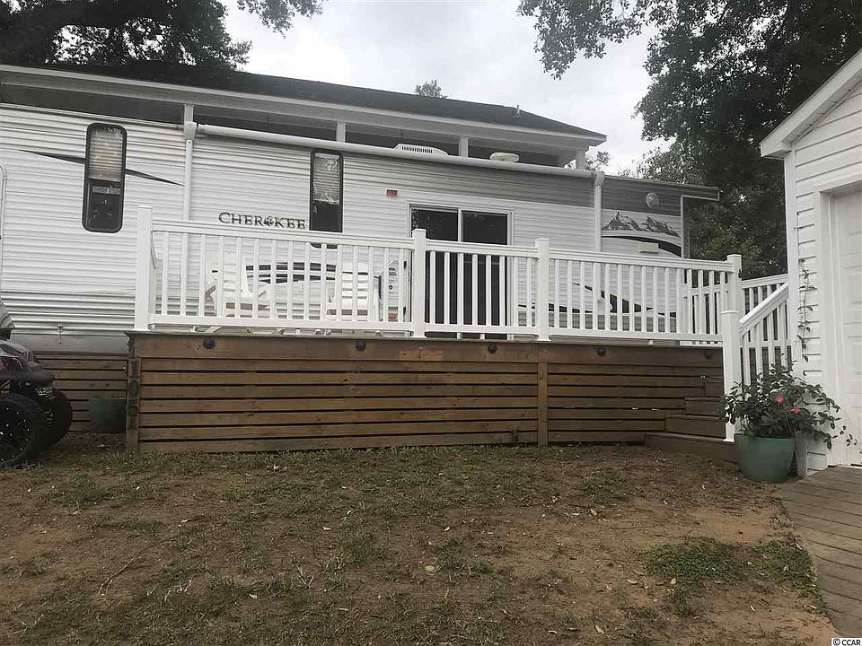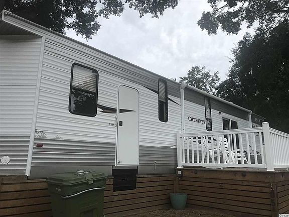 Beautiful RV with 2 bedrooms/1 full bath with shower. Furnished with full size refrigerator,microwave,washer/dryer hook up inside,and 3 burner gas stove with oven. Couch is a full size pull out bed,table for four,full size recliner,built in sound system with DVD,tall ceiling,and plenty of storage in every room. 8x20 deck with low voltage lighting,storage building 10x12 with electricity. Outside storage on RV and outside electrical outlets. RV,Deck and Storage unit are all hurricane strapped. Ocean Lakes has 2 pools,lazy river,water park,shuffle board,golf cart rentals,General Store, Meet & Eat.