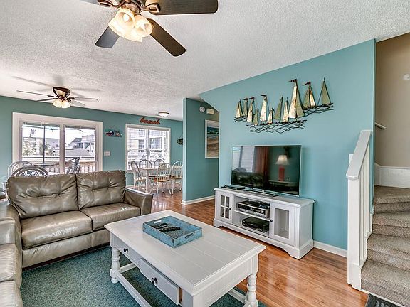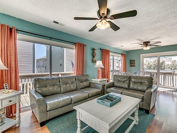 STUNNING 4 BED/3 FULL BATH OCEAN BLOCK RAISED BEACH HOUSE. Just steps to private beach access in a gated community in the Ocean Lakes Campground. Two outdoor pools, water park, indoor pool and splash zone included in annual land lease. Spacious main deck. Additional amenities include basketball courts, play areas, cornhole, indoor recreation center and miniature golf to name a few.
