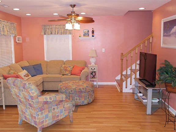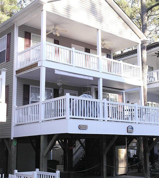 Beautiful Raised Beach House in Ocean Lakes Family Campground, an Oceanfront Resort....Don't Miss out on this low to no maintenance home so close to the ocean. Use it as a primary home or better yet an Investment Home. OL is a Oceanfront Resort with so many amenities, 24 Hr Security, miles of beaches, indoor and outdoor pool, waterpark with 2 slides and splash zone, lazy rivers, miniature golf, skate park, basketball courts, playground, stores etc. For years families have been coming and spending their vacations in OL and now all grown up they are returning with their families. Its also a great place for Snow Birds who enjoy renting for several months at a time. This home was built in 2006, with vinyl exterior, sturdy vinyl decking with aluminum railings, storm door. Under house you can fit anywhere from 3-5 cars, there is a single car garage-storage for owners things or golf cart. This home also has an outdoor shower to wash up before going in the house, a swing for those waiting or just enjoying the day. The house first deck has a gate, it offers a barbecue and outdoor furniture to enjoy summer nights. The first floor has laminate hardwood floors, its an open floor plan with a nice living room and large screen tv, the Kitchen has stainless steel appliances, corian counter top, fully equipped, lots of cabinets, breakfast counter sitting 3, dining area sits up to 6. There is a half bath, laundry closet with a stackable washer and dryer, One bedroom with queen bed, tv, walk in closet, and private bathroom. The house sleeps up to 10 guests. The other 3 bedrooms are upstairs, one with a queen bed and private bathroom, the other has 2 twin beds, and another with a queen bed, all bedrooms with walk in closets and tvs, the loft has a sleeper sofa and tv, for additional guest space to enjoy the day, walk out to the second floor deck on those summer nights.