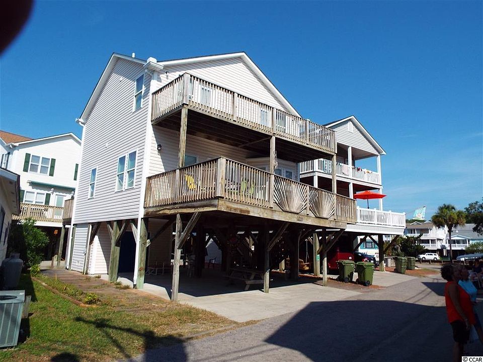 Here is your new home at the beach. 5 bedroom and 3 bath raised beach home with ocean views. This home comes completely furnished. You are sure to love the open and airy floor plan. Plenty of room for the entire gang. Breakfast bar included. The home features huge decks including an 8 x 28 top floor deck accessible from 2 bedrooms. The home has 1 bedroom and 1 bath downstairs and 4 bedrooms and 2 full bath rooms upstairs. Plenty of parking underneath the home and added ground decking make this home complete. Are you familiar with Ocean Lakes? Ocean Lakes is a 300 acre ocean front complex with 24 hour security. You are sure to love all of the amenities that Ocean Lakes has to offer. Some of the amenities included are an indoor and outdoor swimming pools, basketball courts, volleyball, shuffle board, horse shoes and much much more. There is an awesome water park complete with lazy river and slides for all owners and guests to enjoy. Short term rental is allowed in Ocean Lakes. Please do not miss this property. View today. Square footage is approximate and not guaranteed. Buyer is responsible for verification.