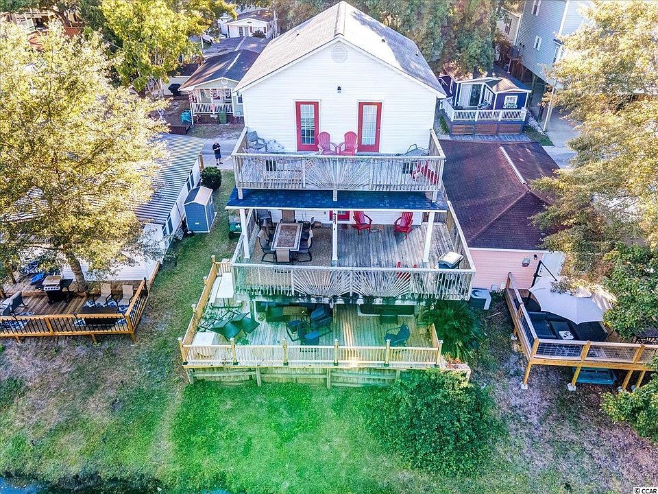 Water/Canal Front 5 Bed/3 Bath Raised Beach House in Award Winning, Ocean Front Ocean Lakes. Move in/Rental ready! Newer kitchen appliances and washer/dryer. Excellent outdoor living space with 2 large decks, private outdoor shower, under house patio and lounging area, attached garage for storing a golf cart and all your beach gear and, ample parking. Truly an investor's dream with room to sleep 12 comfortably. Schedule your private showing today!. There is no HOA in OceanLakes however, the house is located on leased land, which is payed in two semiannual payments in January and July.