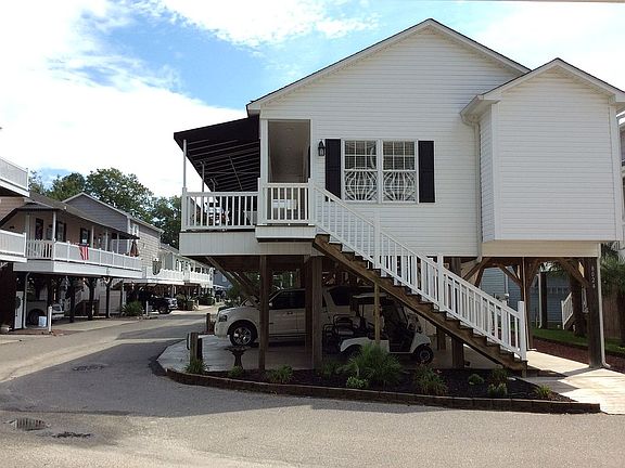 This 2BR/2BA stick built home on stilts is in the award winning Ocean Lakes Campground. This is a gated community with amenities such as: a waterpark with slides, lazy river, and kids splash zone; indoor and outdoor swimmings pools; an 18-hole miniature golf course; oceanfront basketball, volleyball, shuffleboard, corn hole, and horseshoe courts; arcade; golf cart rentals; a general store, 2 cafes, and a mile of beach. This is one stop shopping for all your vacation needs. Home is situated on leased land. Annual lease is $8526 paid in two equal installations of $4263 due in January and July. Lease covers amenities plus 24 hour security, trash pick-up, and free basic cable. Our home sits on a corner lot and has 3 wide parking bays plus side entry for golf cart pull through driving. The interior features 9 foot ceilings and crown molding throughout. There is plenty of room to relax or entertain friends and family both inside with an oversized living/dining area or outside on the large deck completely covered with an awning installed in 2016. Updated LVT flooring installed and new paint on walls and ceilings in 2016. Kitchen features lots of cabinet and countertop space with rollout trays, and a useful home office area. Hard furnishings are available for negotiation with your offer. As the owners who built this property, we have enjoyed it as our 2nd home and in more recent years as our primary residence. But we are starting a new chapter and have decided to move back closer to family and expand our travel resume. Please contact me if you have questions or would like to set up a time to view our property.
