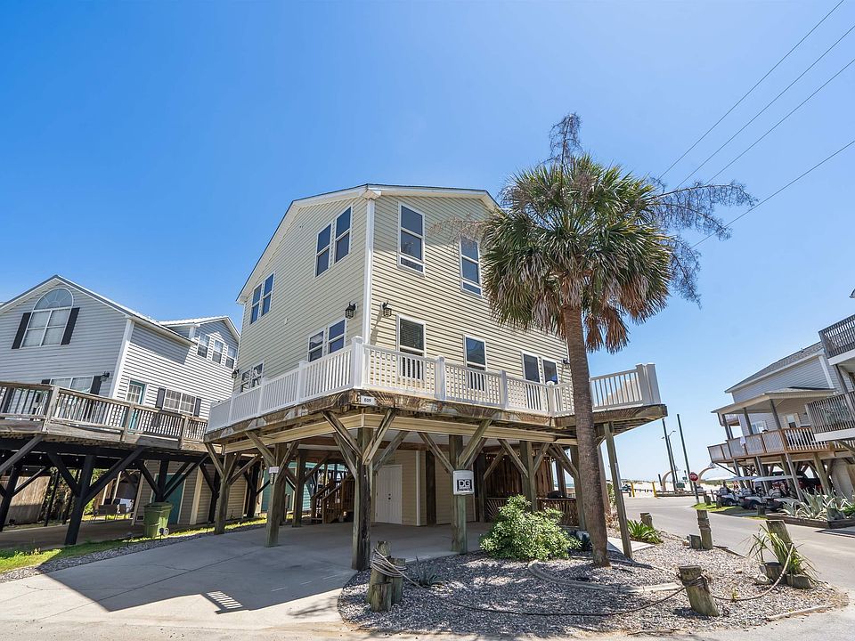 BEACH HOME WITH AMAZING OCEAN VIEWS! Are you looking for some rest & relaxation? Want to take time out to get your toes in the sand and reset? If so, this is the house for you! This beautifully updated 3 bedroom, 2 bathroom raised beach home has an inviting open airy floorplan with tons of natural light featuring a unique floorplan that offers two separate living spaces! Exceptional ocean views from the decks featuring spacious covered & uncovered areas to soak up the sun and enjoy those warm ocean breezes. Lower level features low maintenance landscaping, a covered outdoor area to hang out by a fire, grill and watch TV, outdoor shower to clean up after a long day at the Beach and garage for your golf cart & Beach accessories. Recent upgrades include: New luxury vinyl plank flooring throughout, paint (ceiling, walls, doors & trim) all deck railings, new upper deck & railings, some new lighting and plumbing fixtures. Sleeping options offer: King bed, Queen bed, bunk bed with full on top & bottom with twin trundle. 2 - queen sleeper sofa's, 1 - full sleeper sofa and 2 - twin convertible chairs. Ocean Lakes is known for their AMAZING Amenities which include: Private Beach Area, Outdoor Pool, Lazy River, Water Park, Mini-golf, Basketball Court, Volleyball, Shuffle Board, Horse Shoes, Recreation Center...and much MORE! Ocean Lakes does not have an HOA but they do have an Annual Lease fee which includes: Trash pick-up, basic cable, 24hr Security & All the amenities mentioned. Close proximity to MB Airport and all the best shopping & dining the Grand Strand offers. This home is turnkey! Don't wait! Call today to schedule your showing!