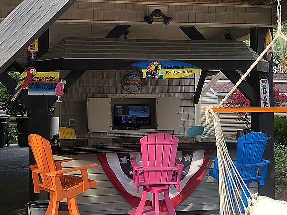 Beautiful home located in Ocean Lakes on a corner lot. This luxury home has granted countertops, hardwood staircase and tile flooring throughout. It is also fully furnished with indoor and outdoor quality pieces that compliments the home. It features a custom painted covered bar, stamped colored concrete and two custom golf carts.