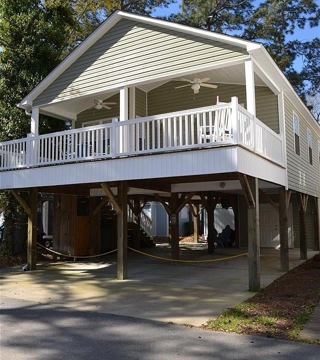 Beautiful 3 bedroom and 2 bath raised beach home located in the award winning Ocean Lakes community. This homes is mostly furnished including the washer and dryer. You are sure to love the 10 x 25 covered deck with 2 ceiling fans along with all of the underneath parking and 11x12 storage shed. The home has a very spacious living area and kitchen. There is a work island with room for a couple of bar stools for added seating. The flooring in the kitchen, living room, dining area and hallway is laminate. The bedrooms are carpeted and the bathrooms have linoleum covering. Both baths come complete with tub and shower combos. Ocean Lakes is a 300 acre ocean front complex with 24 hour security. You are sure to love all of the amenities that Ocean Lakes has to offer including indoor and outdoor swimming pools, splash zone, basketball courts, volleyball, shuffle board, horse shoes and much much more. Short term rental is allowed in Ocean Lakes. Please do not miss this property. Square footage is approximate and not guaranteed. Buyer is responsible for verification.