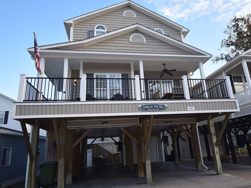 Meticulously maintained exquisitely FURNISHED home in the prestigious Ocean Lakes community! With 2 large ensuite bedrooms sporting king beds - one on each floor - family and guests live in comfort! Need space to entertain? This home is THE ONE FOR YOU with beautifully stamped concrete lounge area below home with hook up for tv & roomy seating, deck including tables and chairs on both ends for fun outdoor memories to be made. Inside, open-concept design allows large gatherings around the high-top table or beautiful, large granite bar & expansive den with wrap around sofa and cozy gas fireplace! Cherished times full of laughter & fun awaits you! Elegance in this home abounds with beautiful tile backsplash in kitchen, pull-out shelves in pantry, high-end rounded corners & exquisite crown molding, recessed lighting, NEW LVT flooring (NO CARPET!) & more! Enjoy full size washer/dryer downstairs, NEW HVAC & new mattresses! Just a short walk or golf cart ride to beach with so many amenities - indoor/outdoor pools, water park slide, game room, putt-putt, etc. This oasis in paradise makes all your dreams come true! Call today and let's get your toes in the sand soon!